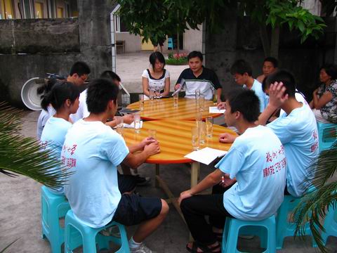会议由许长宾老师主持。许老师先让所有的队员总结自己本天的工作,以及实践一周以来自己的工作经验和感受。主要是有关课堂教学和社区服务的总结。