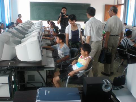 上午9点孩子们在老师和服务团队员的带领下一路向少年宫进发。一路上孩子们有说有笑,对这次少年宫之行充满了好奇。来到少年宫之后,孩子们分成了4组:唱歌舞蹈为一组,乒乓球训练为一组,计算机培训为一组,参观图书馆为一组。分组后,孩子们开始在工作人员的带领下认真的学习起来。计算机组的是人数最多的,孩子们在工作人员和实践队员的指导下顺利的操作着计算机,实践队员为了提高孩子们学习的兴趣,拓展深度还给孩子们介绍了电子邮件的发送等有关的内容。参观图书馆的同学们,一进图书馆就扑进了书籍的海洋,自然、人文、科普应有尽有,实践队员给孩子们当起了解说老师,有什么不懂的、理解不了的需要进一步解说的实践队员都一一细心的帮助解释。乒乓球组的同学也玩得不亦乐乎,有厉害的同学还挑战实践队中的乒乓球高手宋文超同学,两局下来竟然打了一个平手!大家不得不惊叹“青出一蓝胜于蓝”。唱歌跳舞组的在老师的带领下引吭高歌,努力的学习老师教的歌曲,尽管有些音调唱的不是很准但是大家都很积极、很认真!