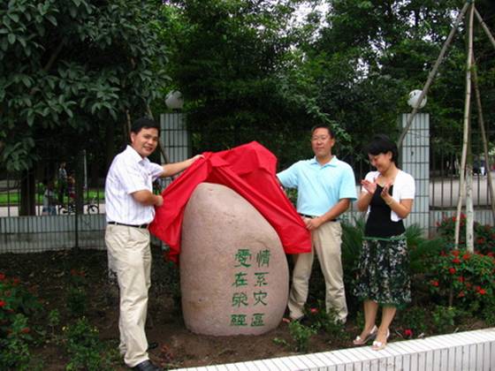 2009年赴四川灾区—雅安市严道二小志愿服务团之“旗山夏令营”顺利结营。荥经县教育局张局长、团县委袁书记、严道二小全体师生、服务团全体成员,全体参营学生及其家长们共计200多人参加。