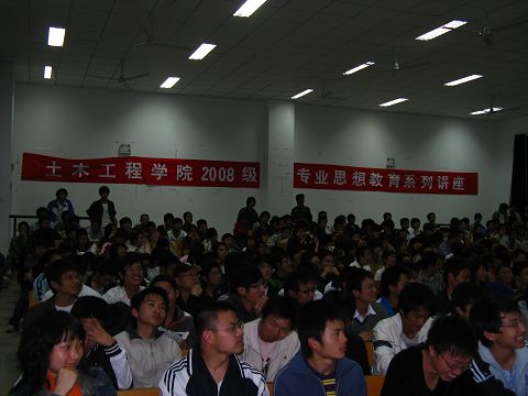 为了让08级新生对水利水电工程专业有更深的认识,学院于3月12日晚7点在文四101室为08级学生展开水利水电工程专业讲座。此次讲座主要邀请了水利工程张挺老师为学生对该专业进行系统介绍。张老师向我们简要介绍学院水利办学历史,主研方向,师资力量,及毕业去向;并结合自己的求学,教学经验,教诲学生走水利方向要学会“爱、痴、静、拼”。张老师还接受了部分学生的提问并作了详细的解答。