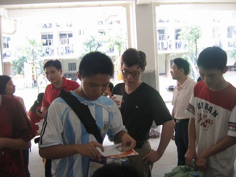 上午10点左右,得知五位四川延考区同学已全部前来报到,两位新生辅导员立即放下手中的其它事物,带着五位前往学校绿色通道办理相关手续。两位辅导员关切地询问了五位同学的情况,并介绍了学校的贷款、资助、勤工俭学、以及教学、保研等方面的政策,希望同学们能够安心的读好书,为灾区的重建做贡献。