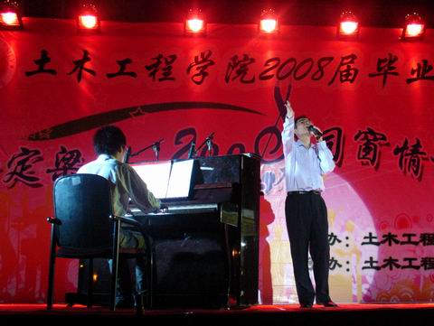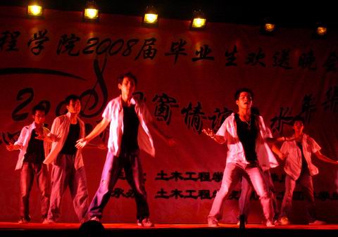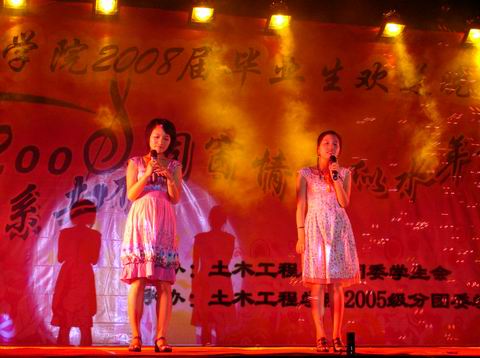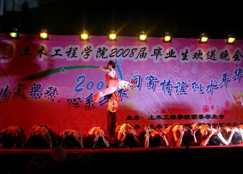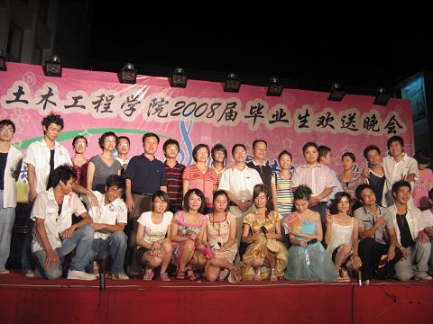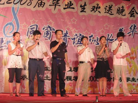 6月23日晚,肉便器 “情定梁筑、心系土木,同窗情谊、似水流年--2008届毕业生欢送晚会”在一区广场隆重举行。院党委副书记刘朝晖、副院长祁皑、团委书记肖强、工会主席方绪华、党委秘书钱升以及各年级辅导员出席了本场晚会并与04级毕业生和其他年级学生代表共同观看了晚会节目。