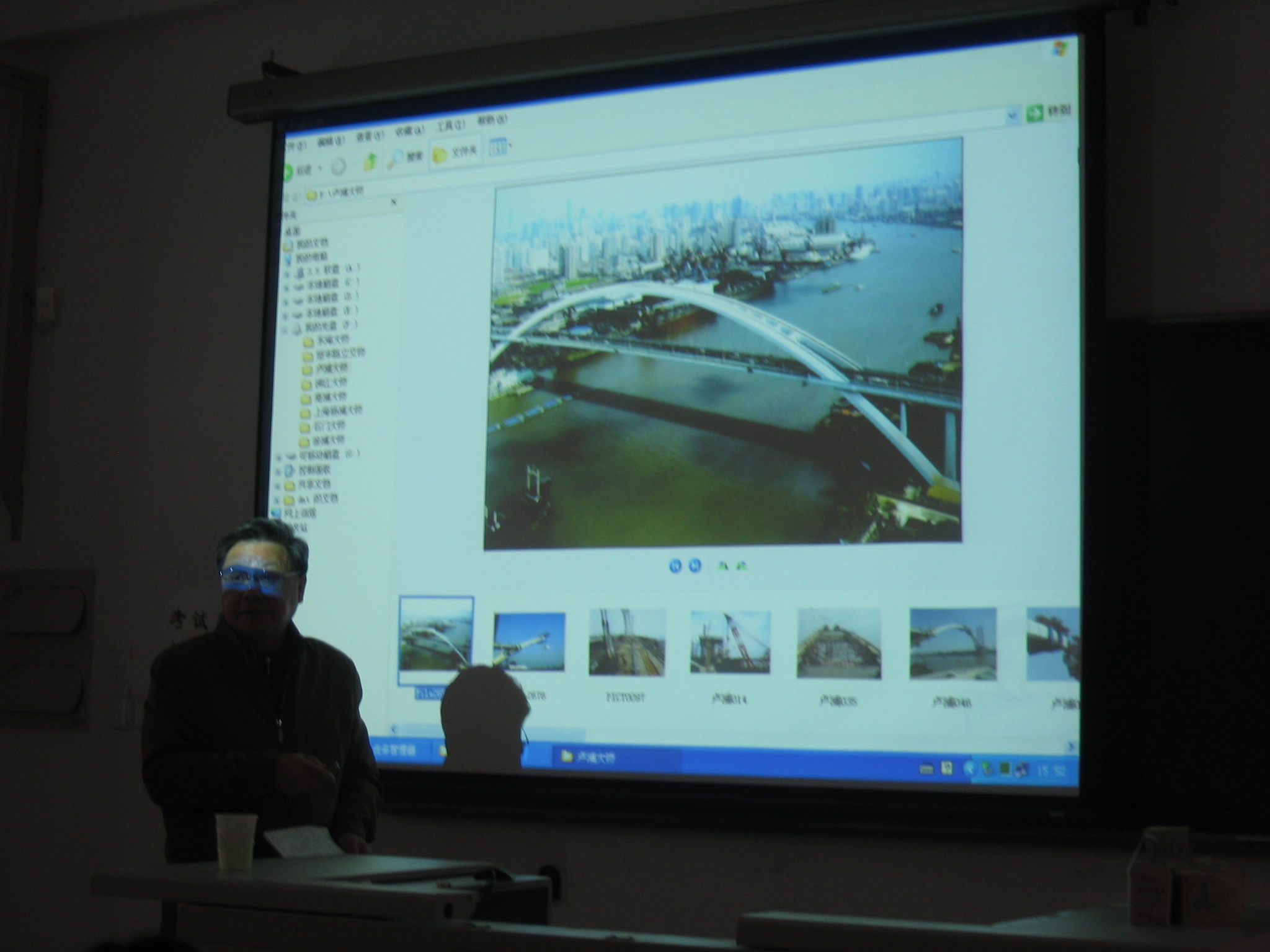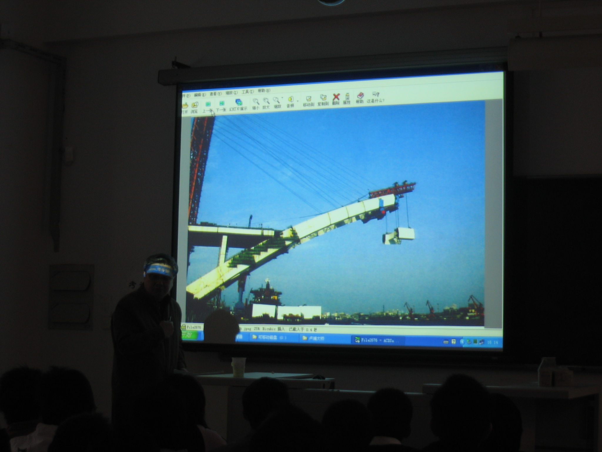 林院士先以自己亲身经历设计的一些拱桥实例向同学们说明了拱桥的优缺点,介绍了自己主持设计的目前世界上已建跨度最大的钢结构拱桥----上海卢浦大桥的设计思路、施工过程、成本控制和施工工艺等内容。