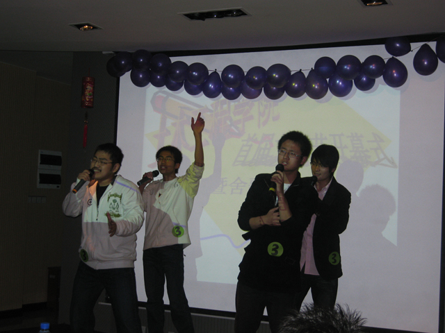 首先是舍歌赛新鲜出炉,上场的选手个个是实力派唱将,无论是温柔缠绵的歌曲,还是激情澎湃的歌曲都被他们演绎得淋漓尽致。真可谓是“大弦嘈嘈如急雨,小弦切切如丝雨”,恰到好处,各有千秋。最后结果在大家的期待中揭晓:10#117宿舍的四位同学凭借他们精悦的歌喉以一曲经典老歌“壮志雄心”荣获了一等奖。10#516宿舍则捧走了二等奖和最佳创意奖两大奖项,同时,9#122,120宿舍也脱颖而出获得二等奖,三等奖的获得者是10#218宿舍和14#113宿舍。