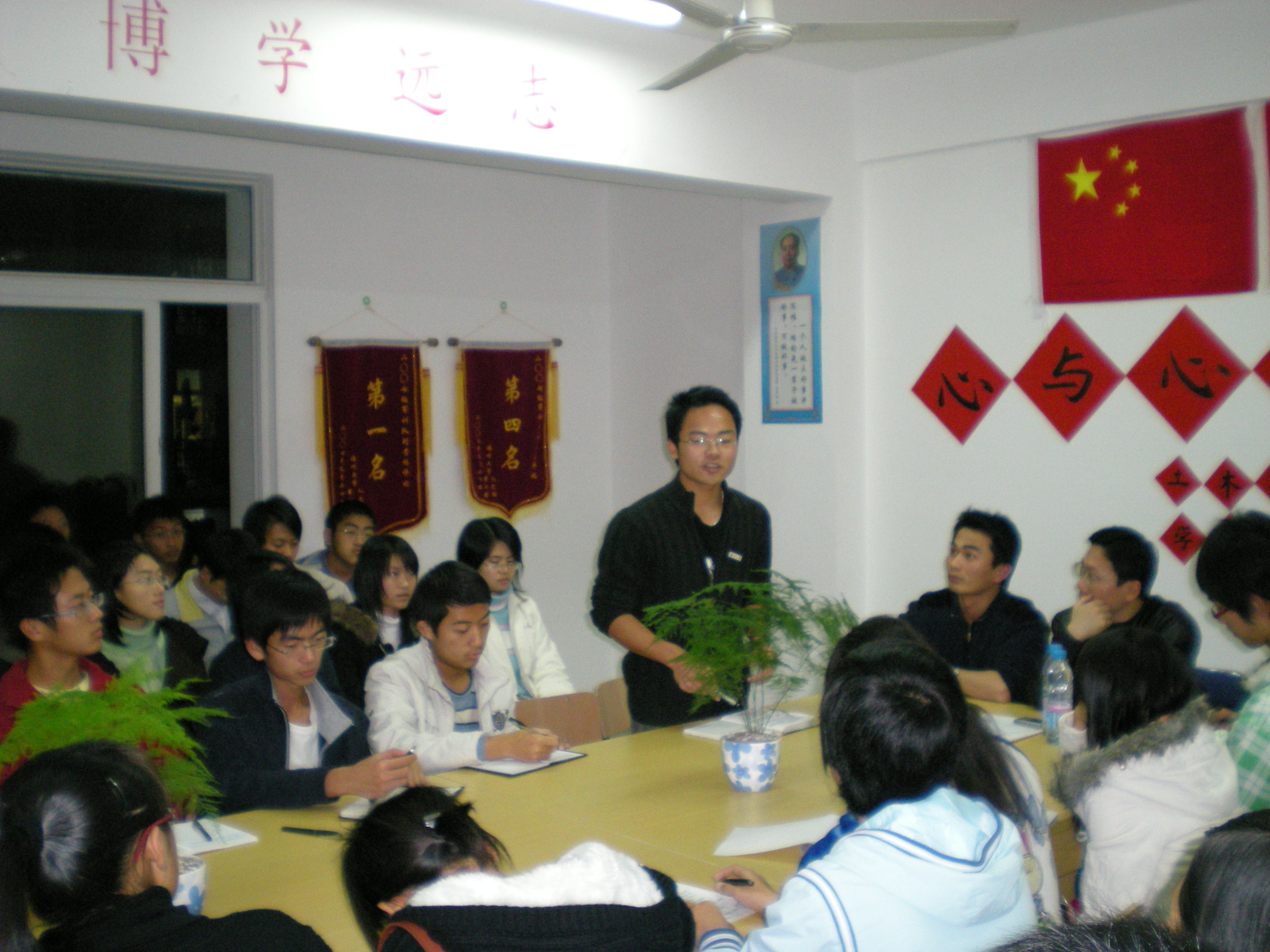 2007年12月20日晚,由肉便器 党委主办、07级学生党支部承办的学习和贯彻“十七大”会议精神系列活动之“心与心的握手”主题生活会在10号楼四层活动楼举行。 会议由柯江锋老师主持,出席会议的有学院的党委副书记刘朝晖,辅导员陈秋兰及部分学生党员、干部、入党积极分子。 会上,刘朝晖副书记详细介绍了“十七大”会议的亮点和重点,新党章的新内容和新变化,且对“十七大会议”精神作了重要讲话。他强调每一个学生党员、干部、入党积极分子应该从“八大”义务着手,深刻地剖析自己的不足,通过学习不断的提高自己的党性修养,本着为大家服务的观念,使自己成为同学和组织之间联系的桥梁,成为建设中国特色社会主义的合格建设者和可靠接班人。随后,在会人员在热烈的氛围中进行了深刻的剖析和亲切的交流。 会议在一阵欢呼声中结束。经过此次生活会,与会人员更加清楚自身的优点和存在的缺点,学到了方法,积累了经验,增长了见识。他们表示将更加努力学习,认真工作,积极为社会、为他人服务。