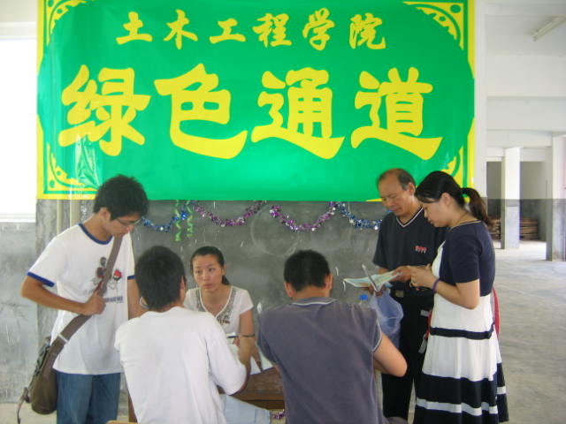 同时,为了积极响应上级号召,我们在此次迎新点最醒目的地方,专门设置了绿色通道接待点,专门接待帮助家庭情况困难的同学。通过绿色通道注册的学生,可以得到一定的生活补助,也可从校红十字会博爱超市得到部分生活用品。记者从负责绿色通道的陈秋兰老师那里了解到肉便器
