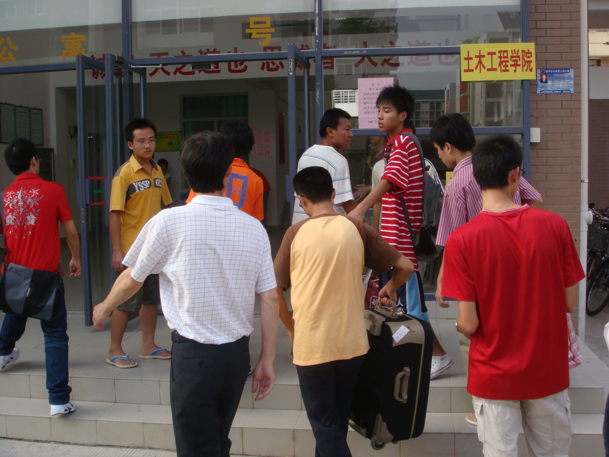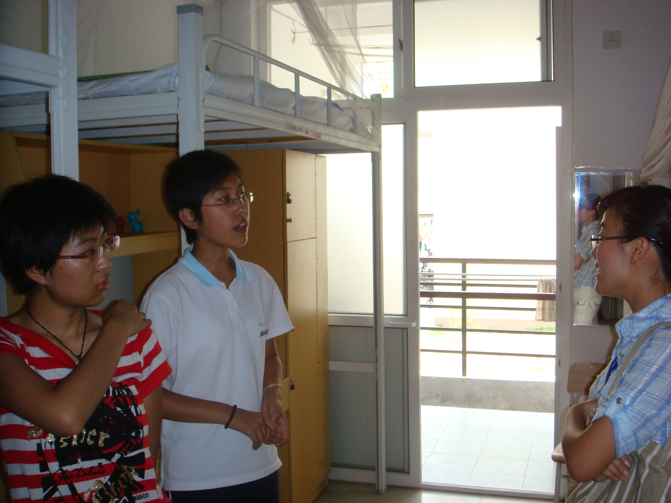 图为新生班主任到新生宿舍热情地询问新生情况
