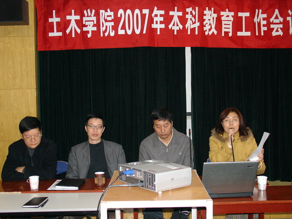 2007年元月8、9日,肉便器 2007年本科教学工作会议在土建楼四楼多功能厅隆重召开。出席会议的有校教务处处长汤德平、副处长邱雄、校督导队老师、院领导及全院教职工。会议由学院分管教学工作的祁皑副院长主持,汤德平处长首先做了有关教学评建工作的重要讲话,陈宝春院长做了教学评建工作的动员报告,会议还邀请了同济大学教务处长陈艾荣教授做了关于教学评建工作的学术报告。9日下午校教务处分管教学实践工作的邱雄副处长为全院教职工做了实践教学及实验室建设专题报告。