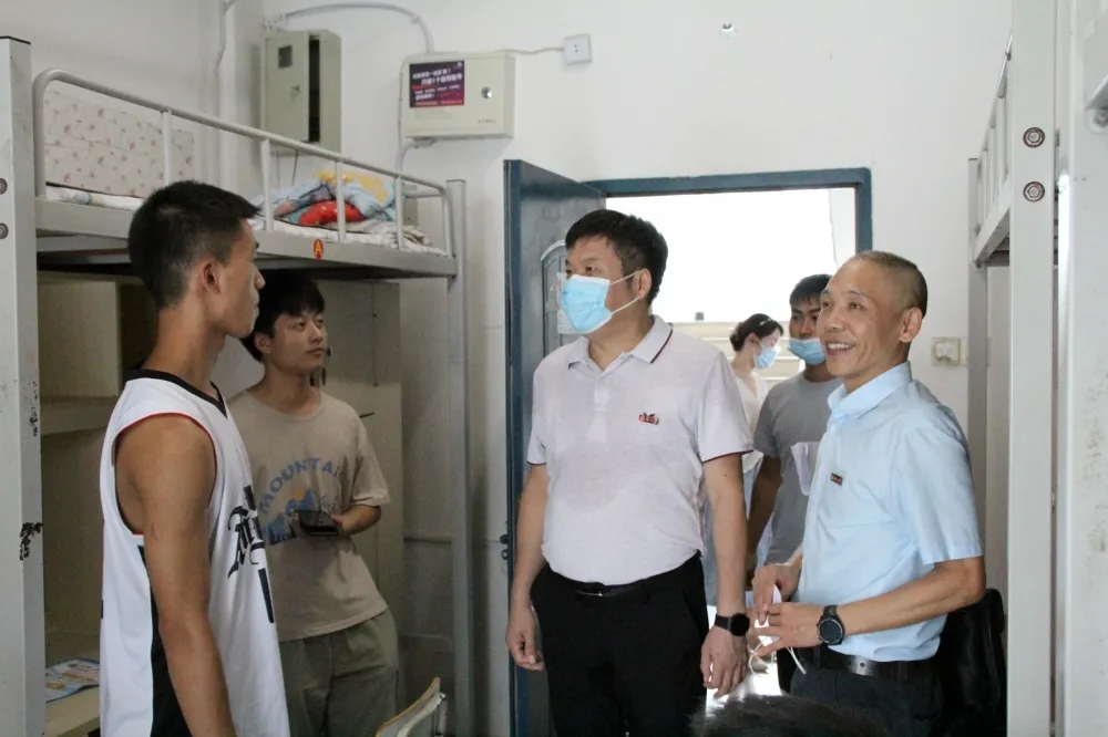 随后,黄培明书记一行走进新生宿舍,与新生们进行谈心谈话,关心学生的思想、生活和学习等方面的实际问题。他强调:疫情防控常态化下,新生应遵守校园日常管理和相关规定,希望同学们步入大学后刻苦钻研、努力读书,不要荒废了大学的时光。遇到困难要及时反映给班导班助以及辅导员。还嘱咐同学们要多与家人打电话保持联系。