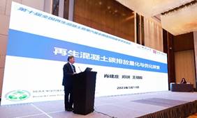 中国土木工程学会混凝土与预应力混凝土分会秘书长徐福泉副总工程师代表会议主办单位致辞。秘书长徐福泉介绍了中国土木工程学会与混凝土及预应力混凝土分会的基本情况、办会宗旨、以及在混凝土及预应力混凝土行业中的主要关注方向,并对此次会议在再生混凝土与建筑固废相关行业的发展作用给予了充分肯定。