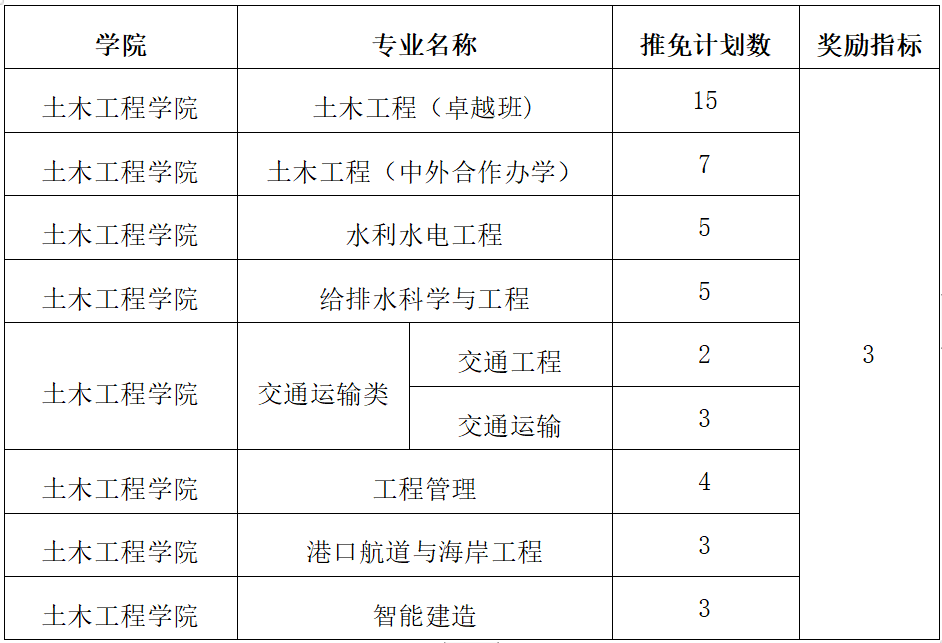 2024届毕业生推荐免试研究生指标分配表
