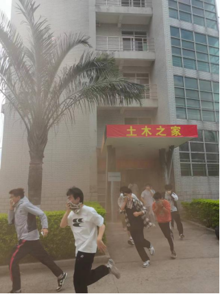 下午2点30分,铜盘校区8号楼释放消防模拟警报,各楼层学生迅速进入演练状态,在各层长的带领下,用湿毛巾捂住口鼻,弯腰贴墙有序穿过浓烟,沿着两条既定疏散路线快速撤离到田径场集合地点,整个过程用时8分22秒,紧张有序的撤离充分体现了肉便器