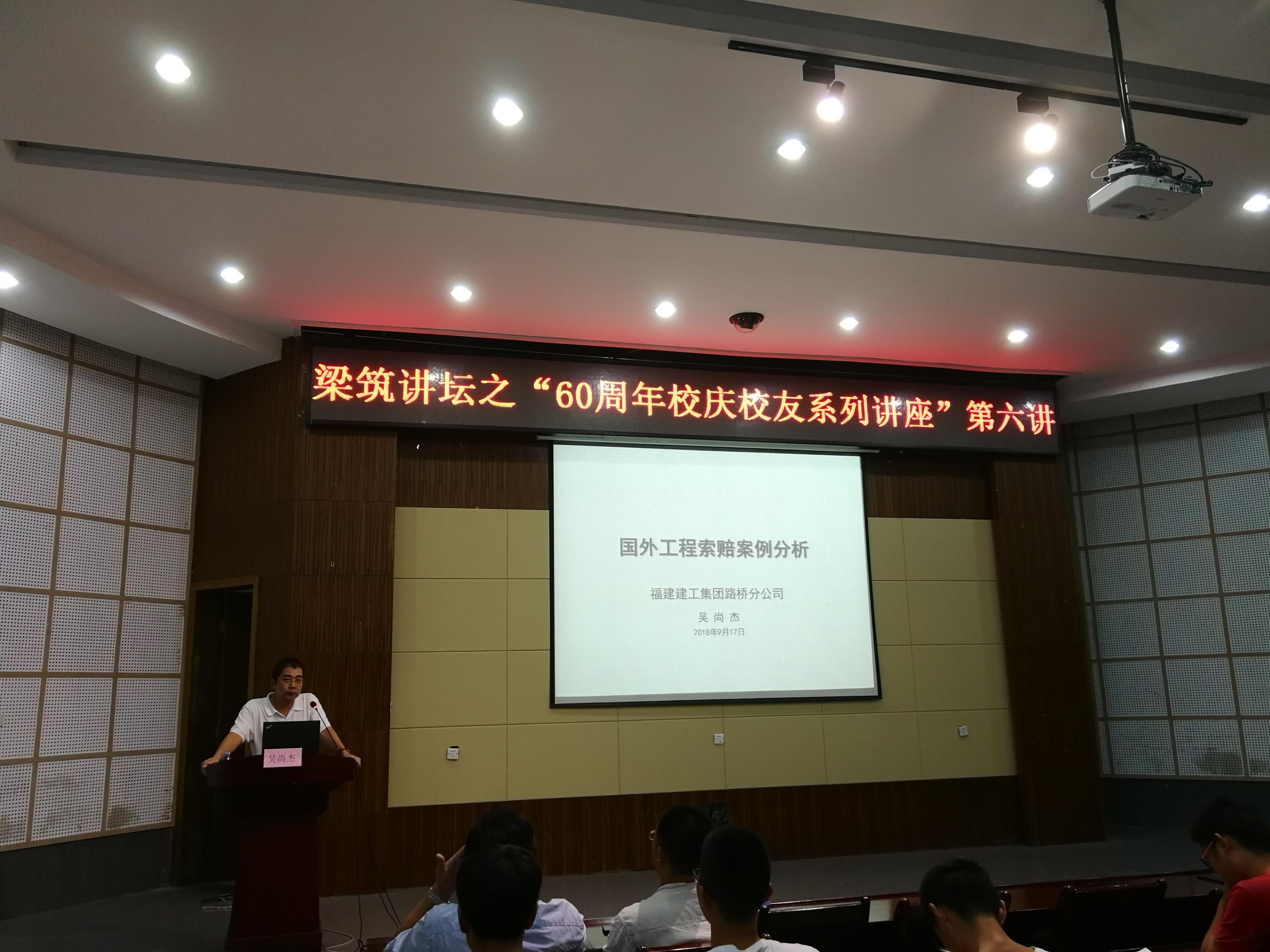 杰出校友,现福建建工路桥分公司副书记兼副总经理吴尚杰博士主讲。出席本次讲座的有肉便器