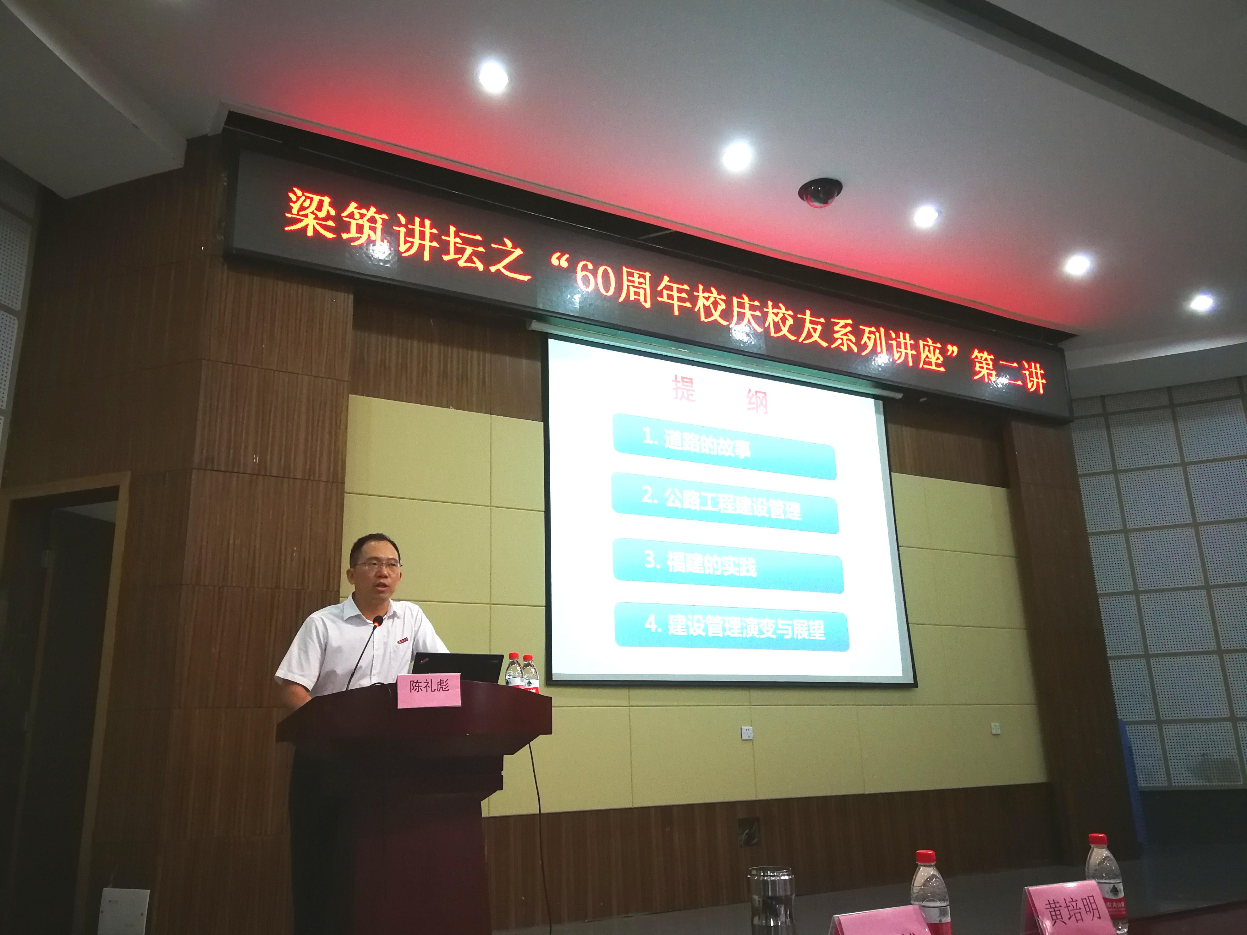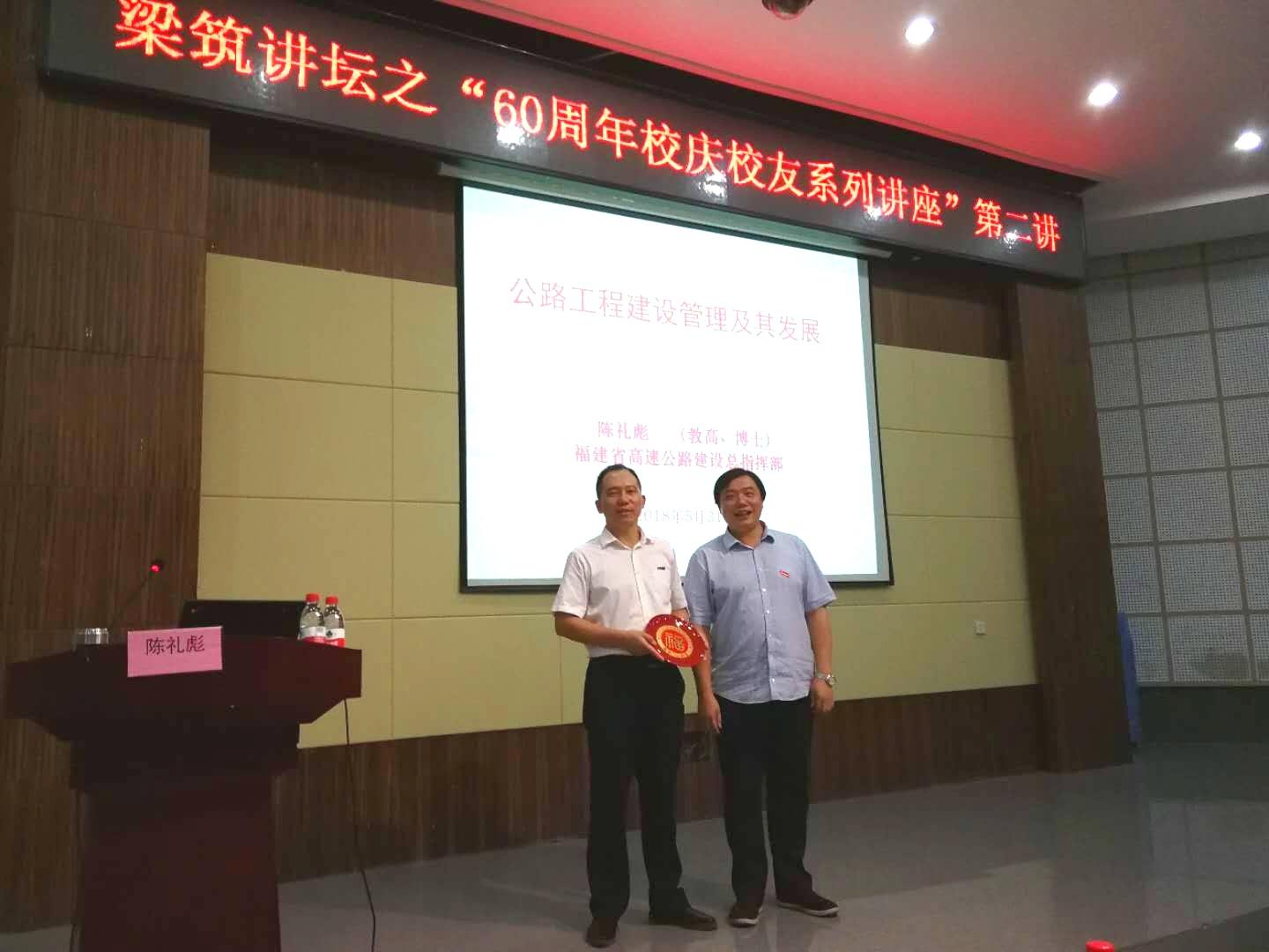 陈礼彪博士为大家带来主题为“公路工程建设管理及其发展”的讲座。讲座伊始,陈礼彪博士以鲁迅的名言“其实地上本没有路,走的人多了,也便成了路”为引子,简要介绍了道路的发展变化过程和公路工程建设管理的主要内容;接着,结合省内高速公路工地管理现状,陈礼彪博士从质量强国、交通强国战略的高度,对公路行业发展趋势做了深入浅出的讲解。最后,陈礼彪博士勉励同学们努力学习知识,面对新形势新挑战,乘风破浪,成就一番广阔的作为!