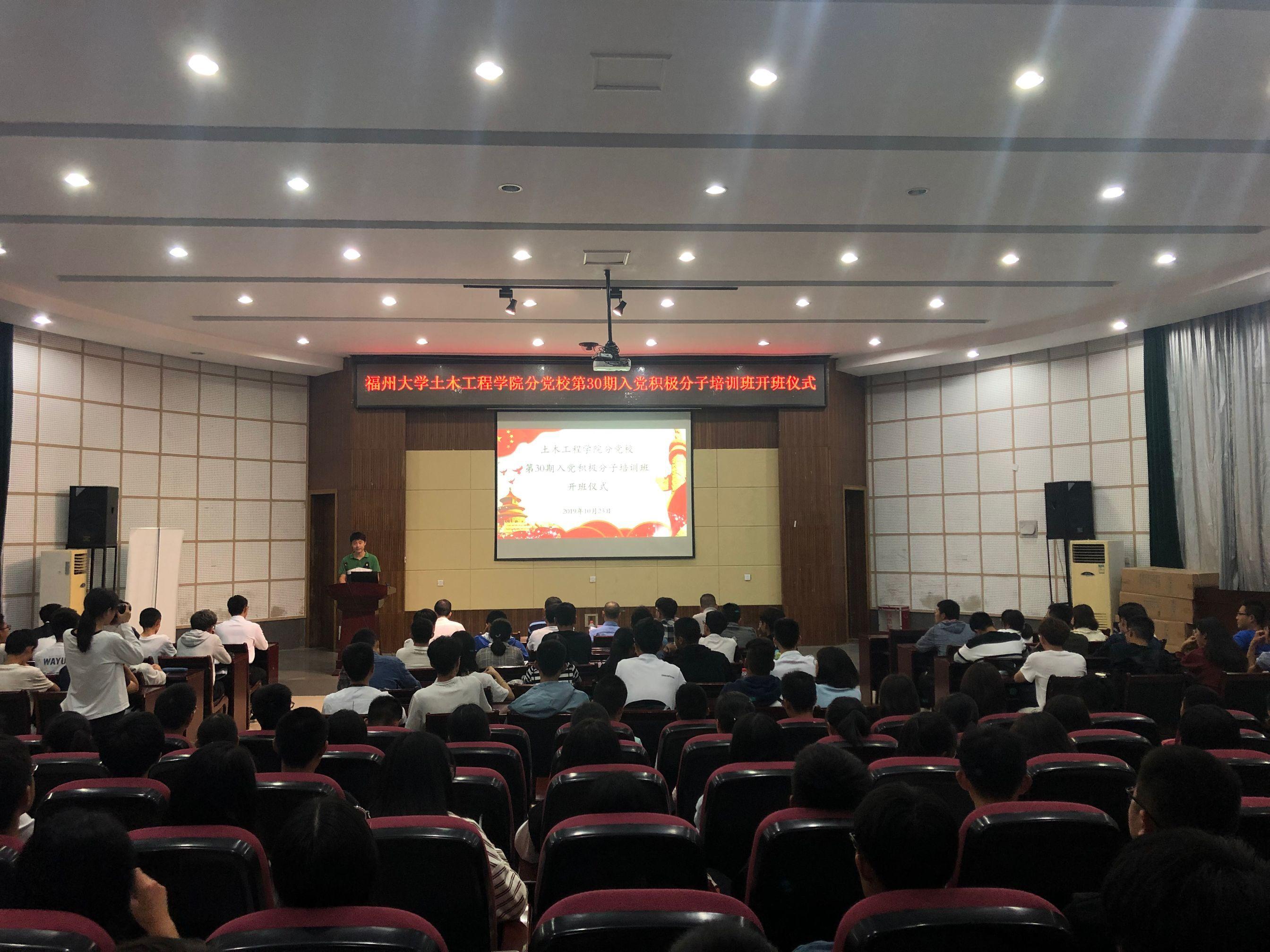 在学院学术报告厅举办土木工程分党校第30期入党积极分子培训班开班仪式。院党委副书记、分党校副校长余飞、党委委员、院团委书记许长宾、以及各年级专、兼职辅导员参加了本期分党校开班。