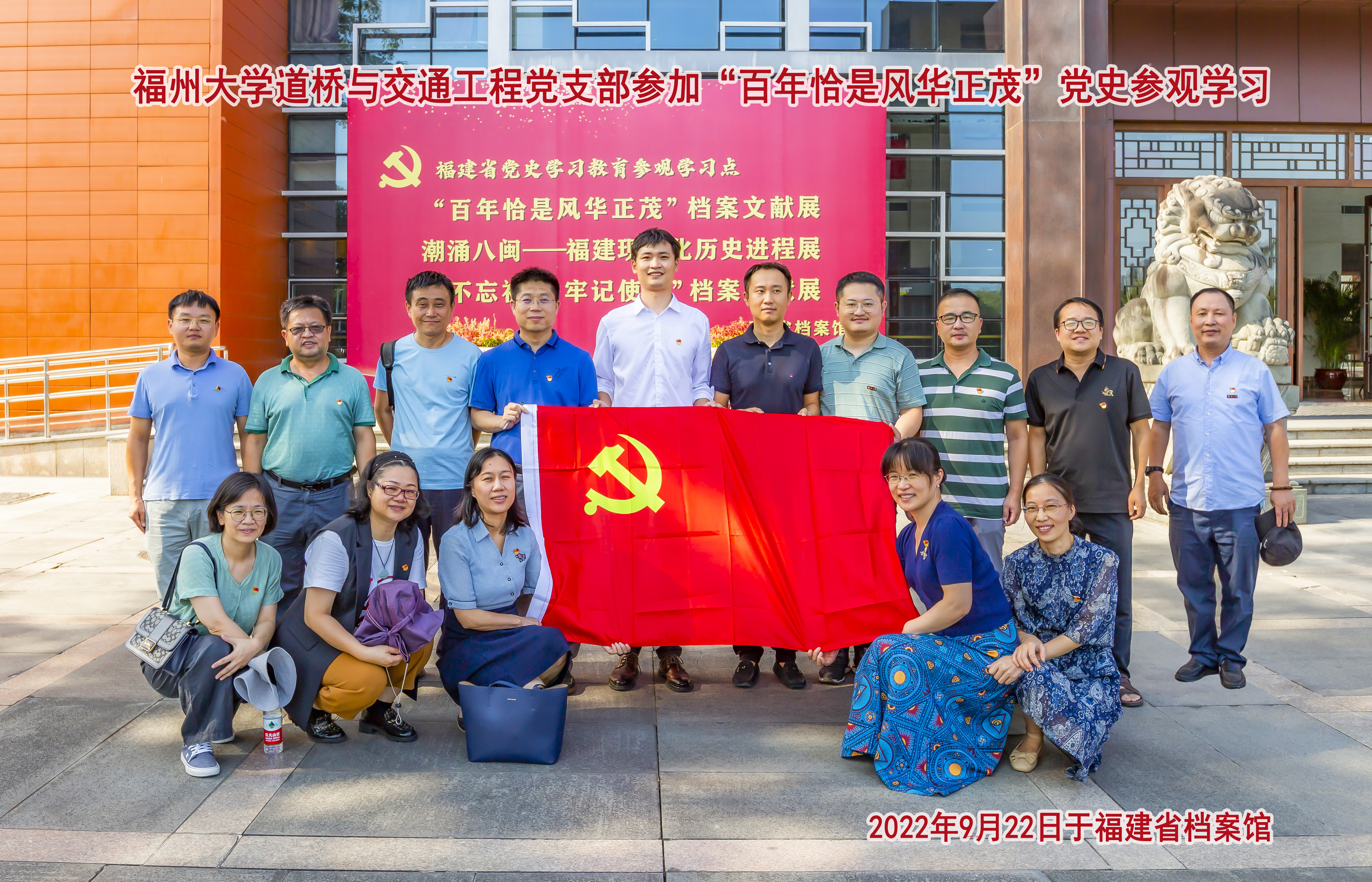 为迎接党的二十大胜利召开,重温党的百年奋斗历史,道桥与交通工程党支部于9月22日下午,组织支部全体党员前往福建省档案馆参观“百年恰是风华正茂”主题展,暨开展“喜迎二十大——档案话百年,学史铭初心”主题党日活动。