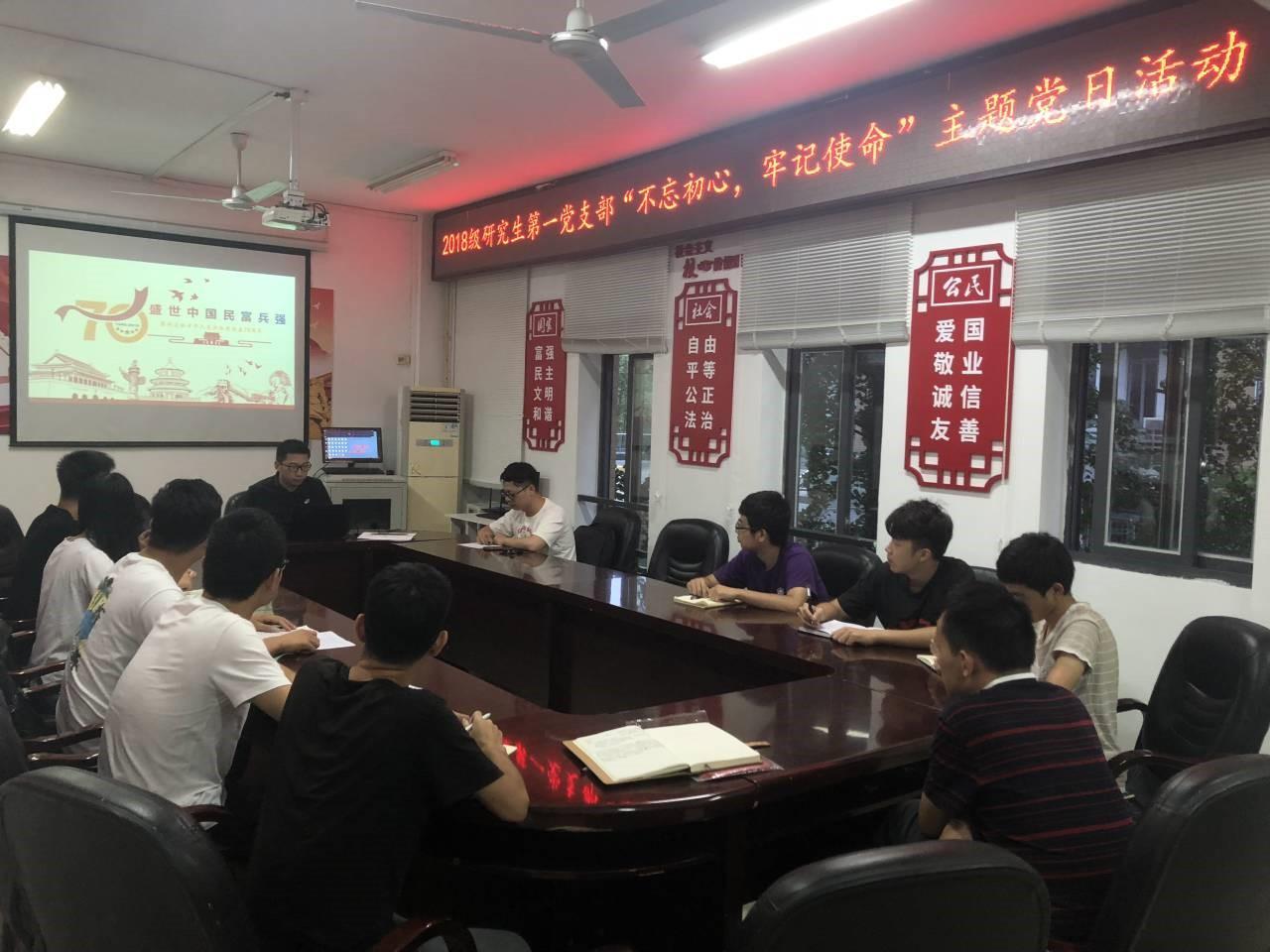 2018级研究生第一党支部于10月17日下午5点00分,在学院二楼开展“支部书记上党课”思想教育活动,课上围绕“盛世中国、民富兵强”这一主题开展深入学习。根据党委工作安排,旨在回望历史、总结教训、展望未来,进一步唤醒我们作为泱泱大国国民应有的自信与自豪。支部党员、预备党员参加了此次学习活动并作发言交流,会议由党支部书记陶亮主持。