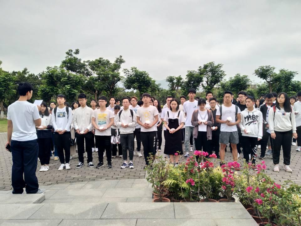 在主持人铿锵有力地宣讲了本次活动的内容以及福大三种精神的具体内容后,全体学员肃立,手持白花,在先人雕像前齐唱国歌,声音浑厚有力,仿佛打破时空的界限与三位老前辈进行心灵上的交流。