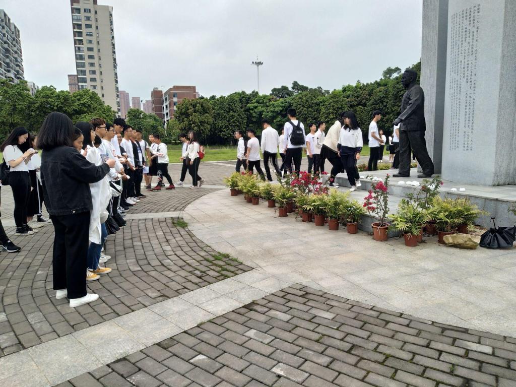 最后在李春慧同学的引导下,学员们分为三组,分别站立在张孤梅先辈,卢嘉锡先辈,魏可镁先辈的雕塑前,依次为三位院士献上白花。