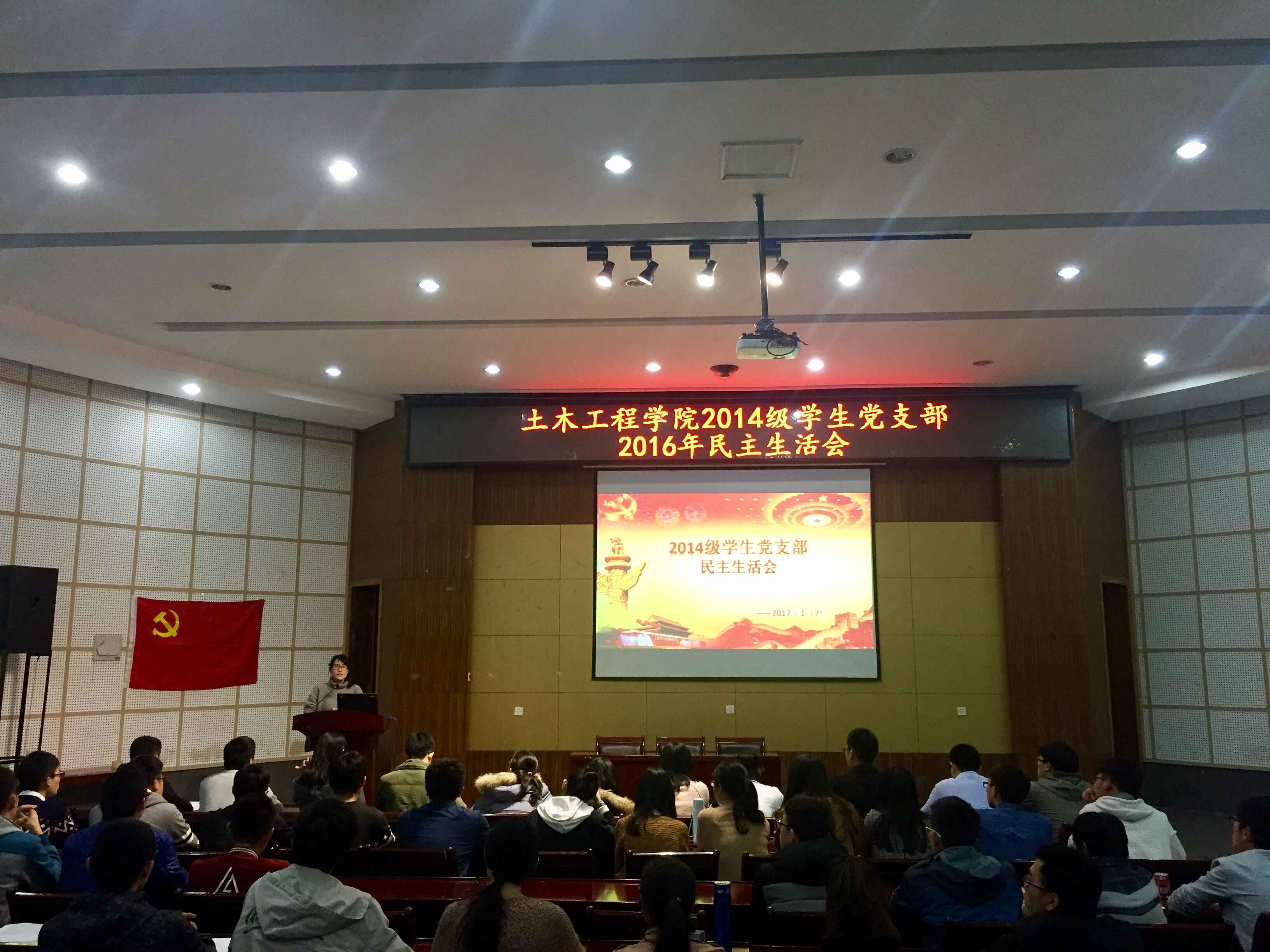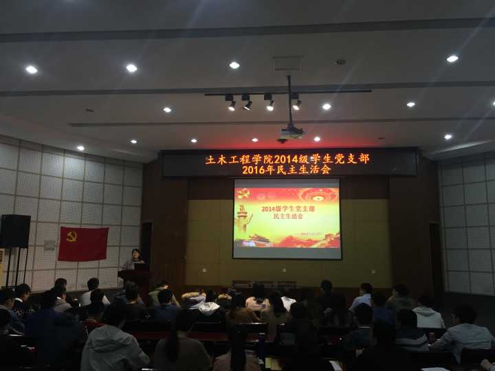 2014级学生党支部2016年民主生活会于土木多功能厅顺利召开。本次会议由2014级学生党支部书记江小敏老师主持,与会成员由2014级学生党支部17名正式党员和54名预备党员组成。本次民主生活会以学习贯彻党的十八届六中全会精神为主题,围绕“两学一做”专题教育,对照学习《关于新形势下党内政治生活的若干准则》和《中国共产党党内监督条例》两项内容,重点开展了党员的批评与自我批评工作。