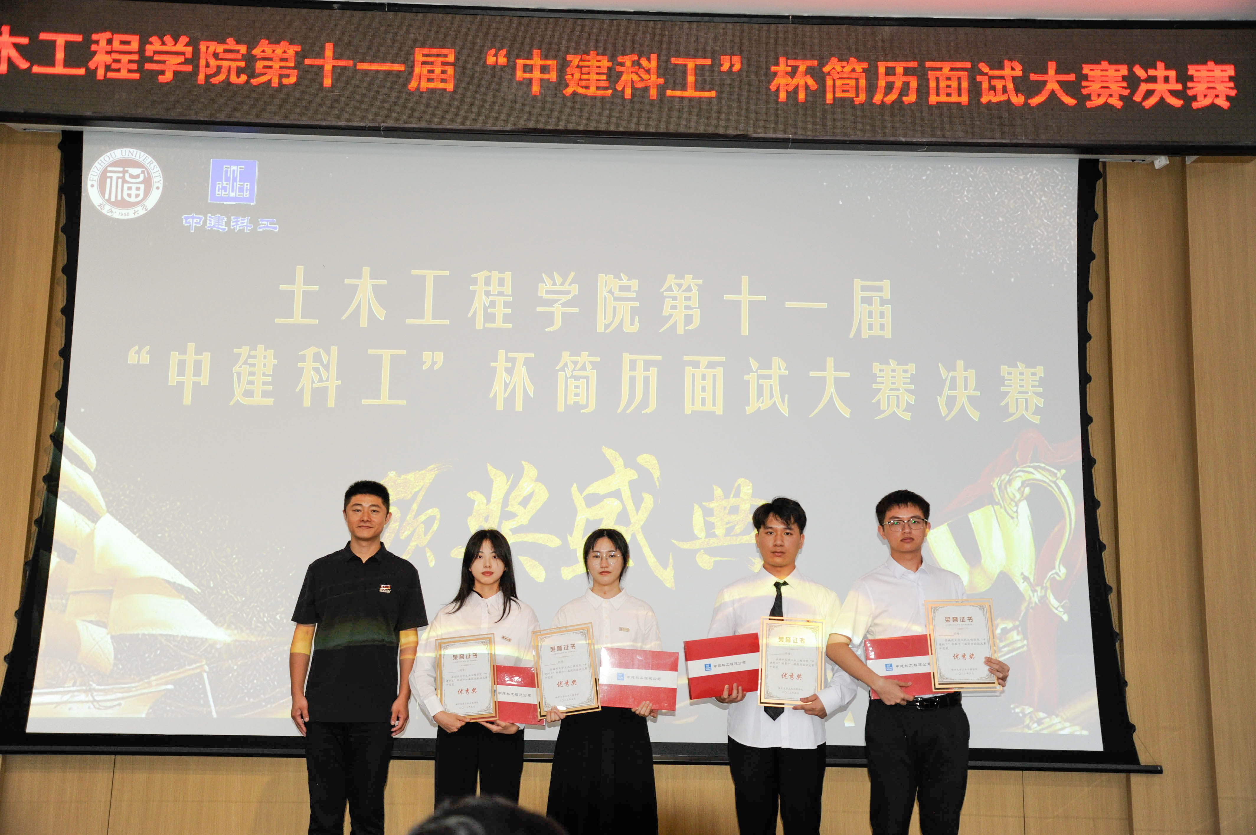 本次大赛分为初赛和决赛两部分,初赛经过评委反复斟酌酝酿,从全院100余份本科生报名简历中评选出11份优秀简历进入决赛,决赛现场邀请到中建科工集团福建有限公司人力资源部经理商金生、人事管理杜汇鑫,中建三局(海南)有限公司人力资源部业务经理易志雄,肉便器