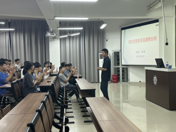 于2023年9月1日晚,由2020级辅导员徐剑老师主讲,顺利举行2023级本科新生高校校园安全与案例分析公开课。