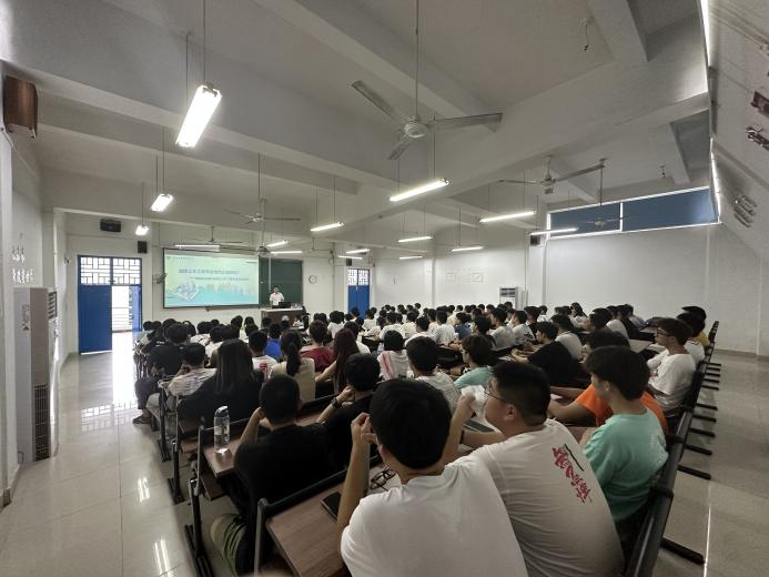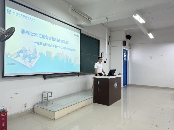 2023级新生专业认知感,提升学生专业认同感,整合土木行业多种就业方向,将整个土木行业特点,行业发展融入至新生入学教育工作中。2023年9月1日下午,土木学院特邀中建三局国际公司人力资源部总经理、金牌讲师牛滢,为新生带来《土木工程专业毕业为何正逢其时》的专业行业职业规划课。