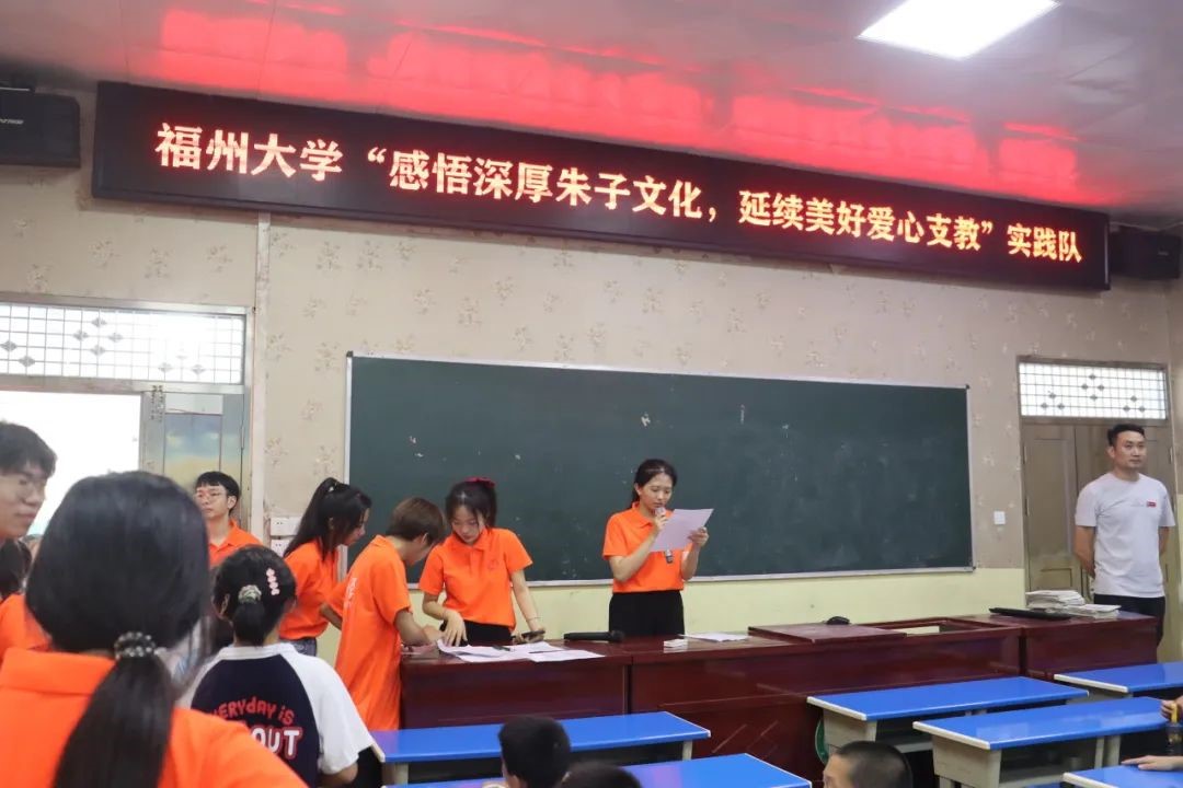 “感悟深厚朱子文化,延续美好爱心支教”实践队赴三明市尤溪县,开展暑期“三下乡”社会实践活动。实践队员结合专业特色,依托暑期夏令营,着眼于文艺兴趣培养、文化启蒙教育等方面,帮助孩子们增长学识、陪伴孩子健康成长。