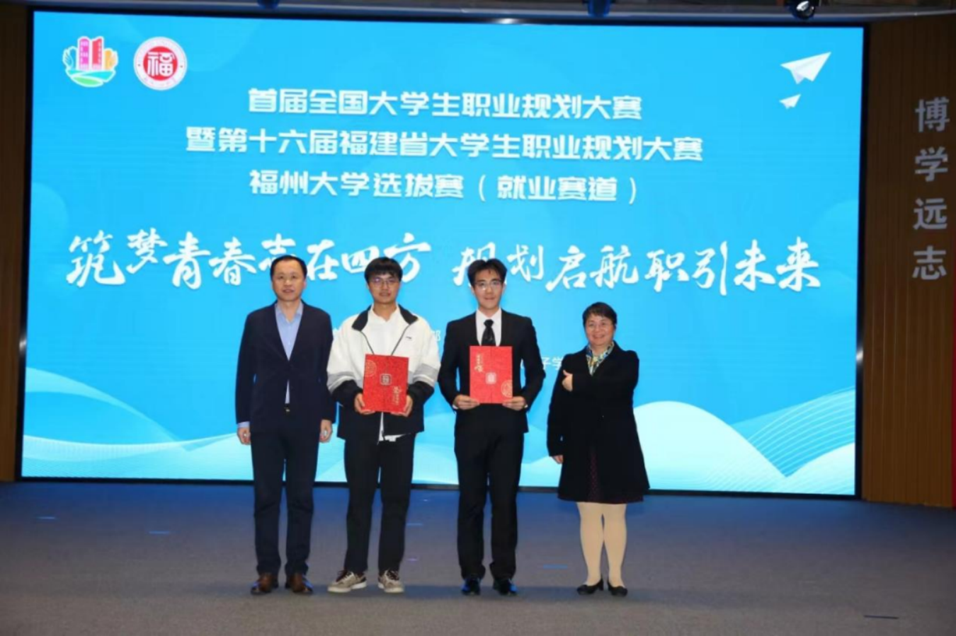 三位同学经层层选拔、脱颖而出进入决赛,最终黄宇洲获就业赛道金奖、林毅腾获就业赛道银奖、农萧宇获成长赛道优秀奖!