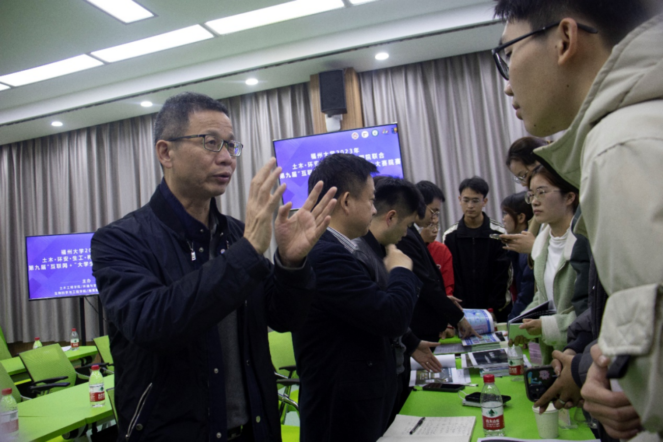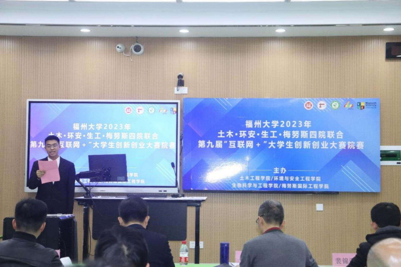 2023年土木、生工、环安、梅努斯四院联合第九届“互联网+”大学生创新创业院赛于教学楼中楼201顺利举行。