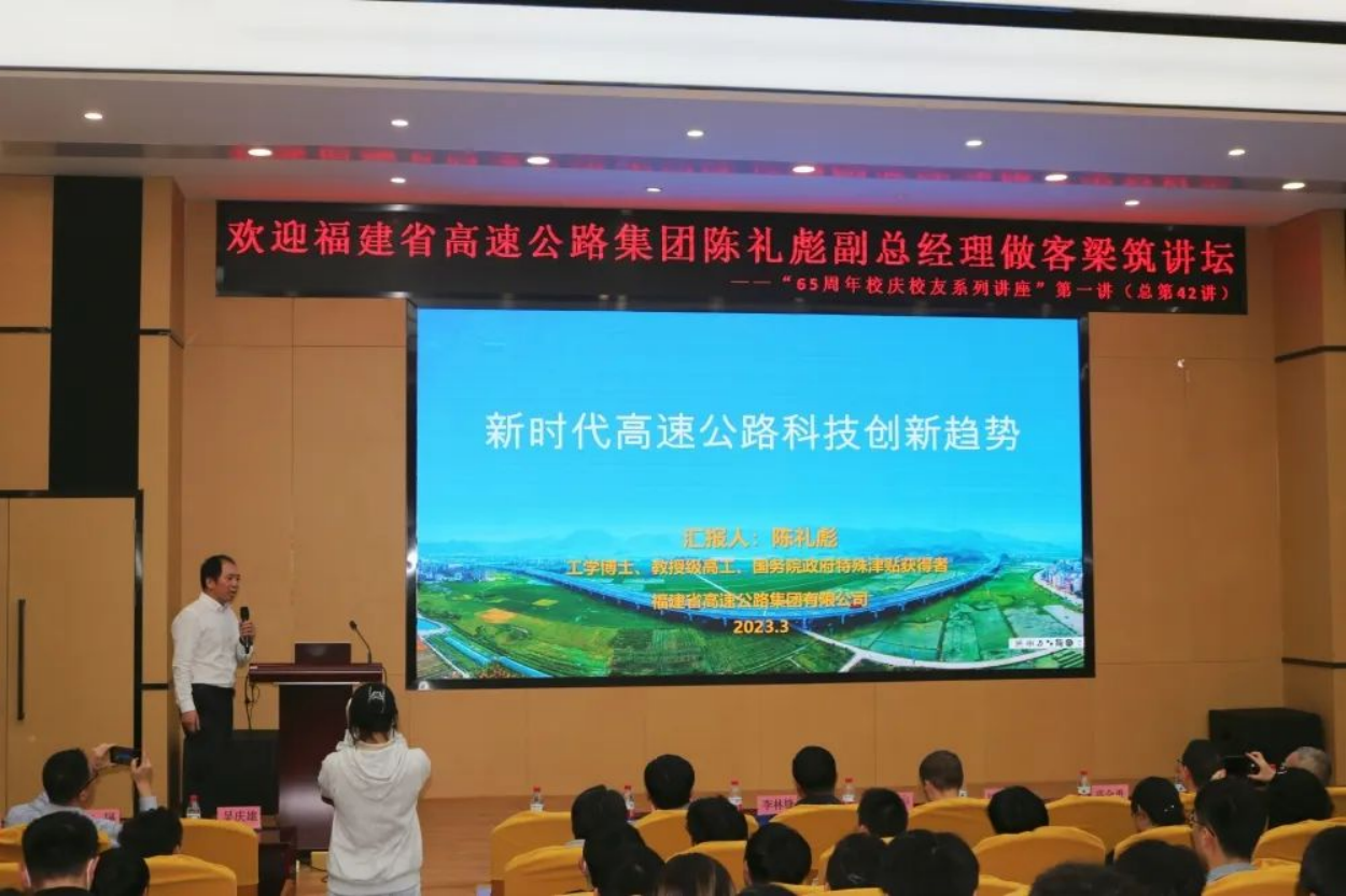 师生作《新时代高速公路科技创新趋势》报告,介绍了高速公路发展成就与规划、高速公路科技发展与趋势和福建高速重大科技项目进展,并简要介绍了集团人才招聘需求,现场反响热烈。