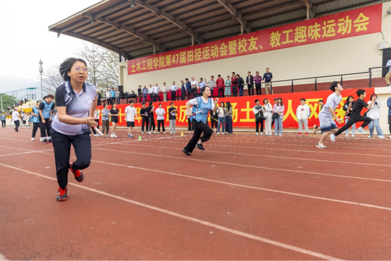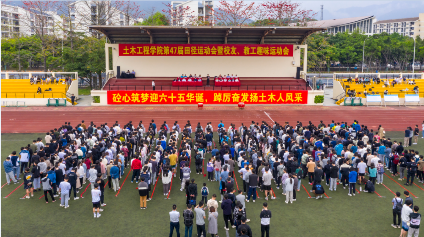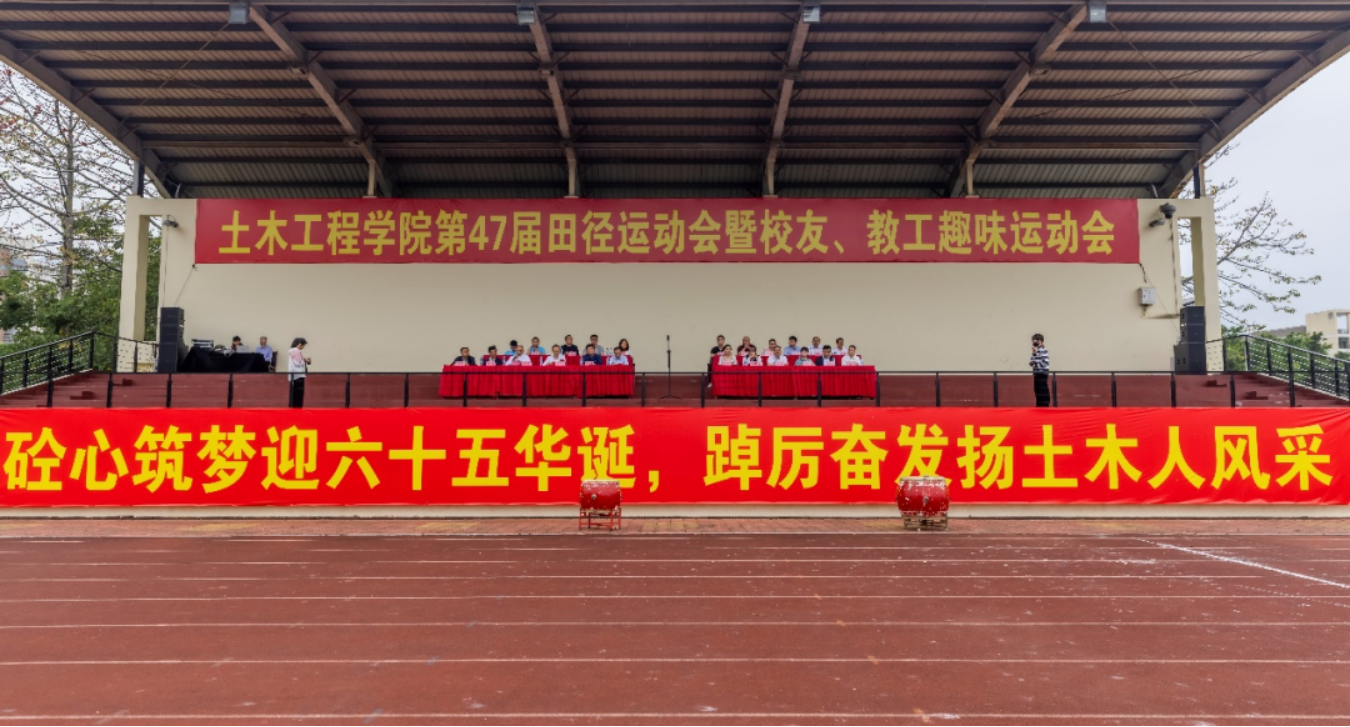 第47届田径运动会暨校友、教工趣味运动会在旗山校区一区田径场举行,校党委常委、林键副校长,校工会常务副主席、校友会会长程玉敏,土木学院党政领导班子成员以及省内各地土建校友会代表、校友企业代表出席开幕式。