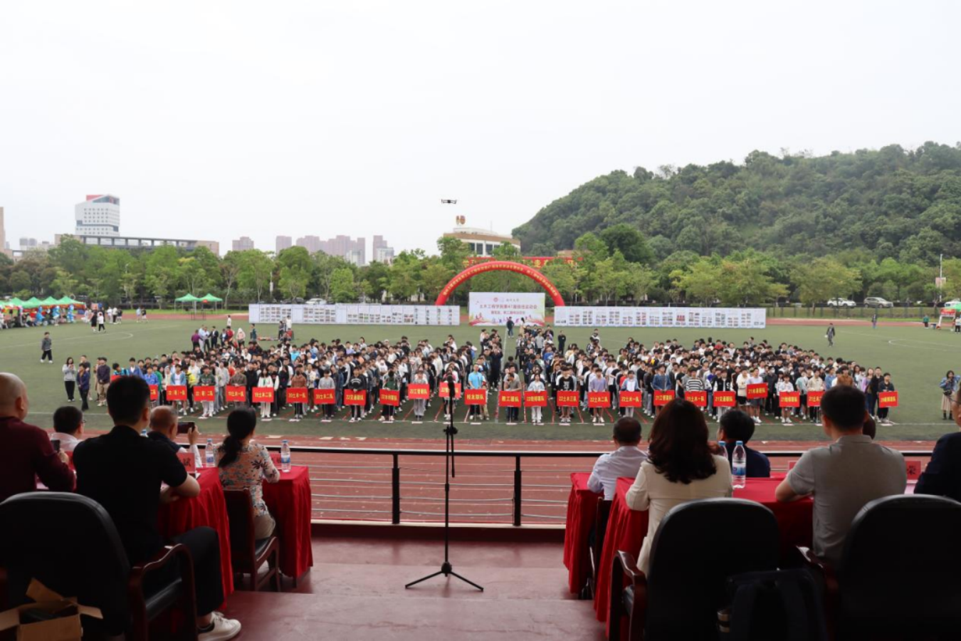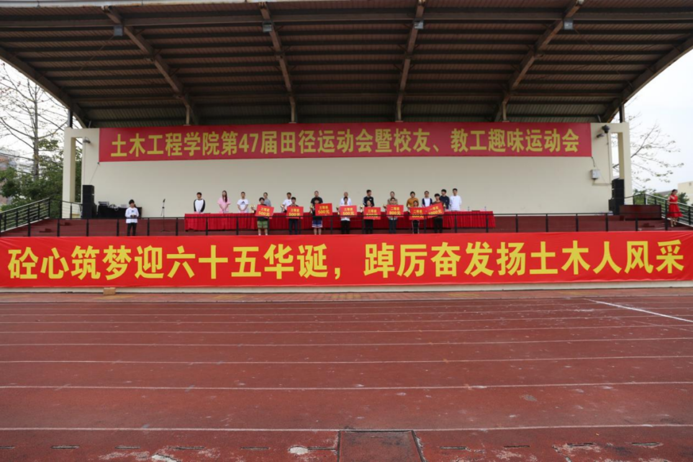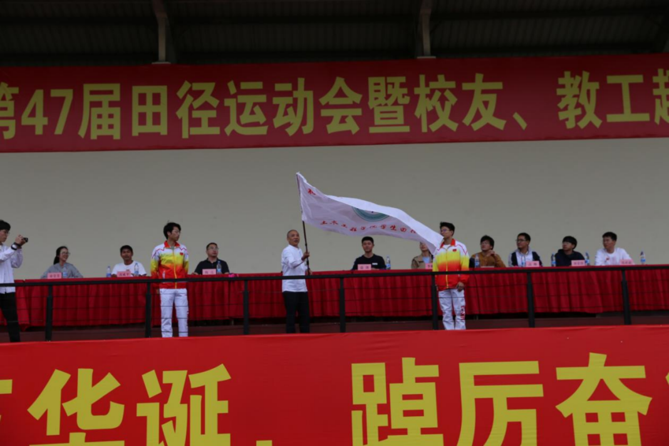 第47届田径运动会暨校友、教工趣味运动会在旗山校区一区田径场举行,校党委常委、林键副校长,校工会常务副主席、校友会会长程玉敏,土木学院党政领导班子成员以及省内各地土建校友会代表、校友企业代表出席开幕式。