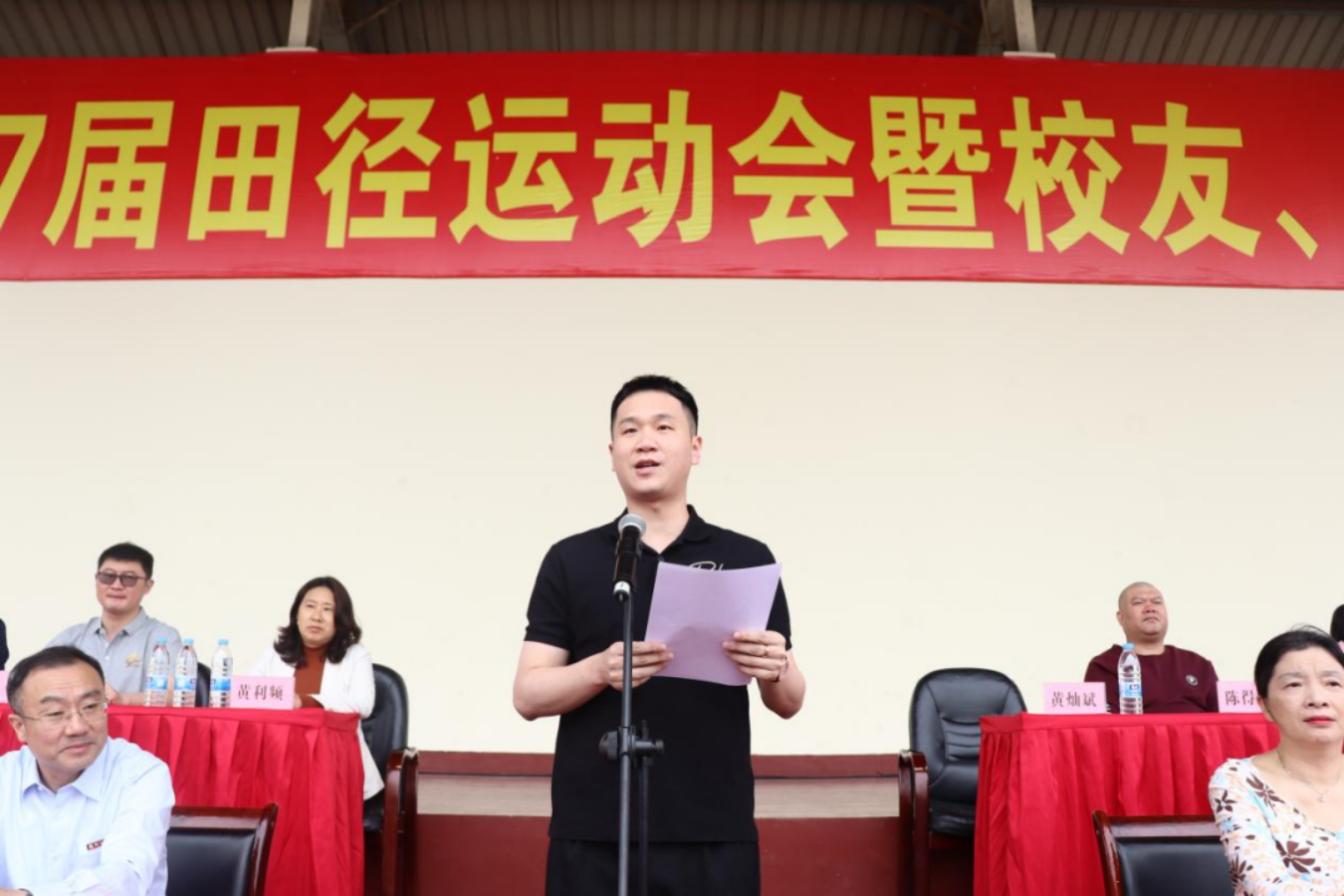 2015届土木工程专业校友、福建省菠萝控股集团有限公司董事长,曾获第14届全国大学生田径锦标赛男子跳高第三名的黄灿斌作为校友代表发言,他回顾了在校期间的成长经历,感恩母院的培养,以自身经历勉励同学们不断追求卓越、超越自我。