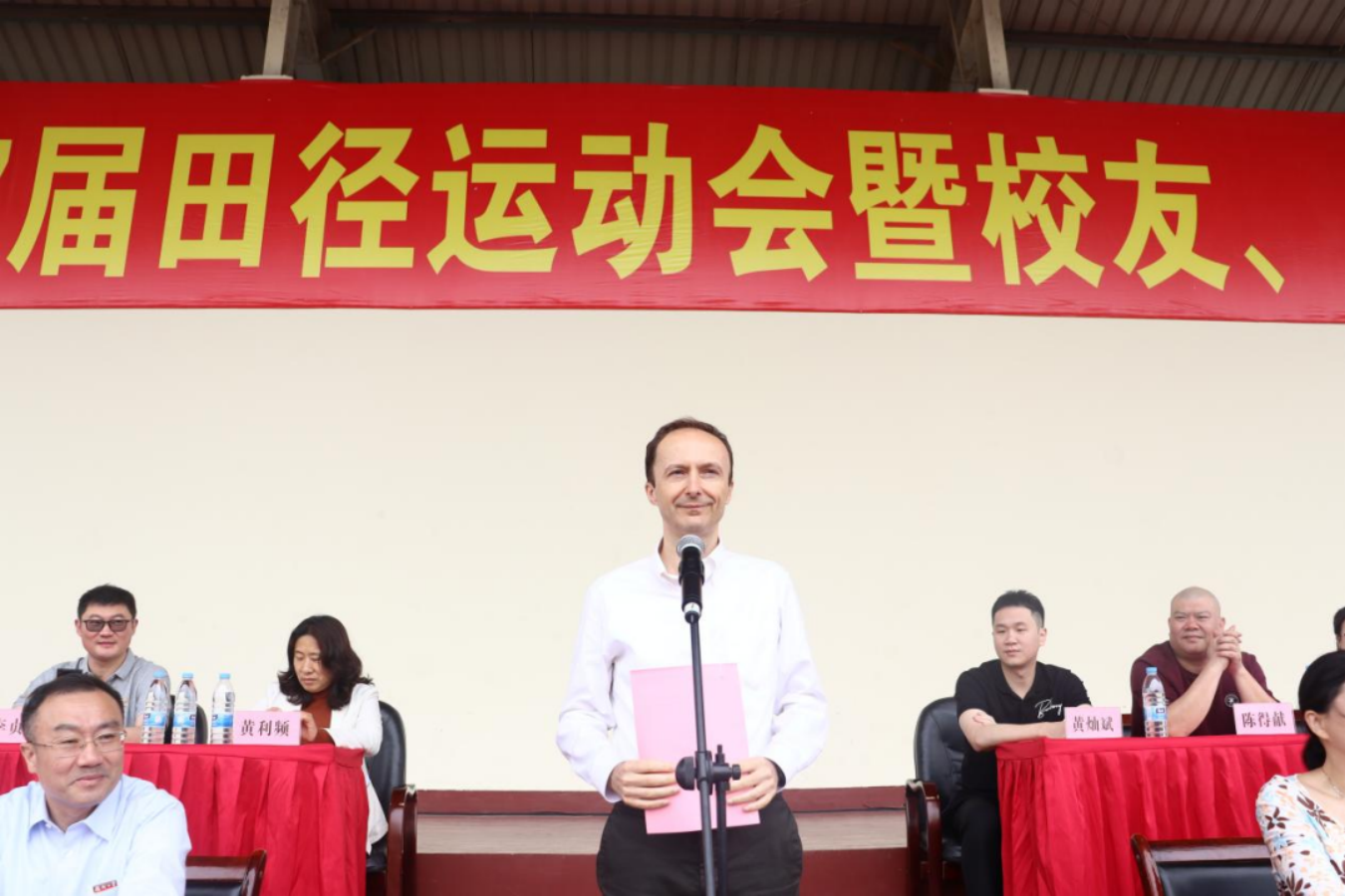 随后,布鲁诺院长发表致辞,他代表学院向为本届运动会成功举办付出辛勤努力的全体工作人员表示由衷的感谢,也为举办运动会踊跃捐献的校友和企业表示感谢,并指出肉便器