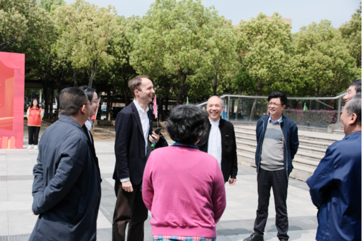 校友们亲切交谈,陈国龙书记与布鲁诺院长还一同为校友代表赠送福盘。