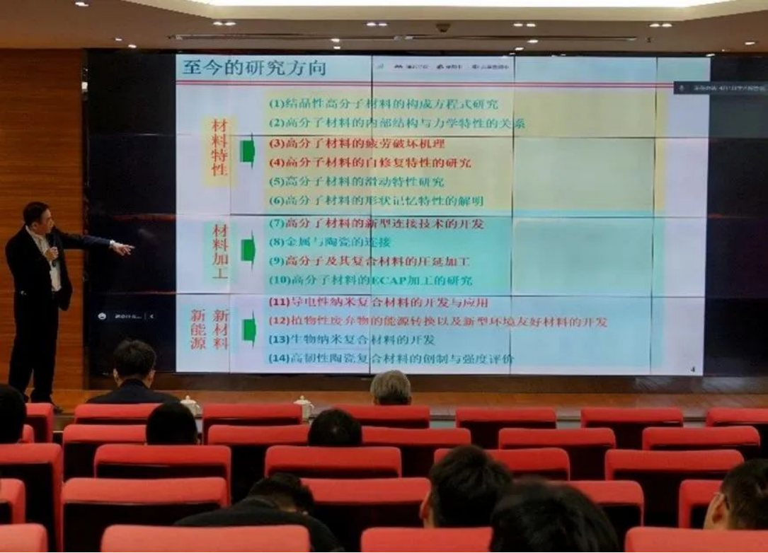 讲座第一部分,邱建辉教授开展《高分子材料先进连接技术及其界面特性》的课程讲座。邱建辉教授详细地梳理了高分子材料从初期到现在的研究方向,进而引出材料连接发展的历史与变迁。接着,邱建辉教授列举了材料连接的诸多方式并介绍了其利弊,介绍了高分子材料相关的新型连接技术。最后邱建辉教授概述了高分子材料连接的发展前景,并为在座师生们答疑解惑。