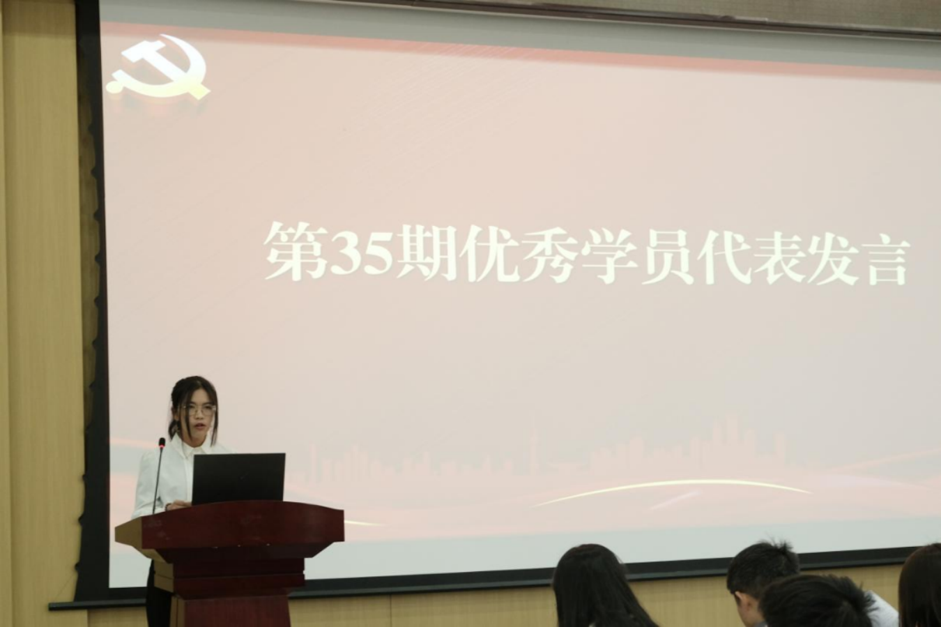 第35期培训班优秀学员代表柯雅露同学为全体新学员分享分党校学习的三点感悟与体会:一是责任与担当,以更开阔的视野,从更高层次去认真思考我们所面临的机遇和挑战,明确自己的责任意识与使命担当;二是见识与使命,注重自身的磨练与发展,坚持理论结合实际,切实处理好每个问题;三是方向和目标,以更加奋发有为的状态和更显著的学习成绩回报组织的教育和培养。