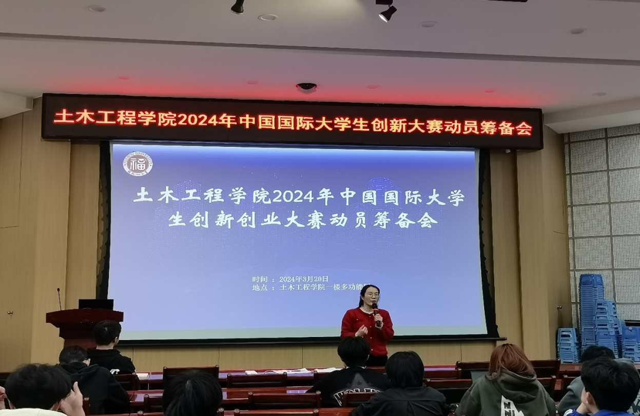 于2024年3月20日在土木学院多功能厅召开2024年中国国际大学生创新大赛动员筹备会。会议由院团委书记江小敏老师主持。
