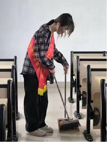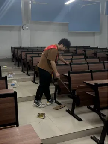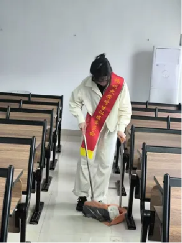 土木学院志愿团队共计招募20名23级学生志愿者,志愿者们收集了同学们对改善教学楼环境的建议,分成上午、下午两个班次对铜盘校区A栋教学楼进行清扫。各志愿者分工明确,捡拾教室垃圾、清理卫生死角、擦黑板等各项工作有序进行。累计志愿服务时长达135.1小时。