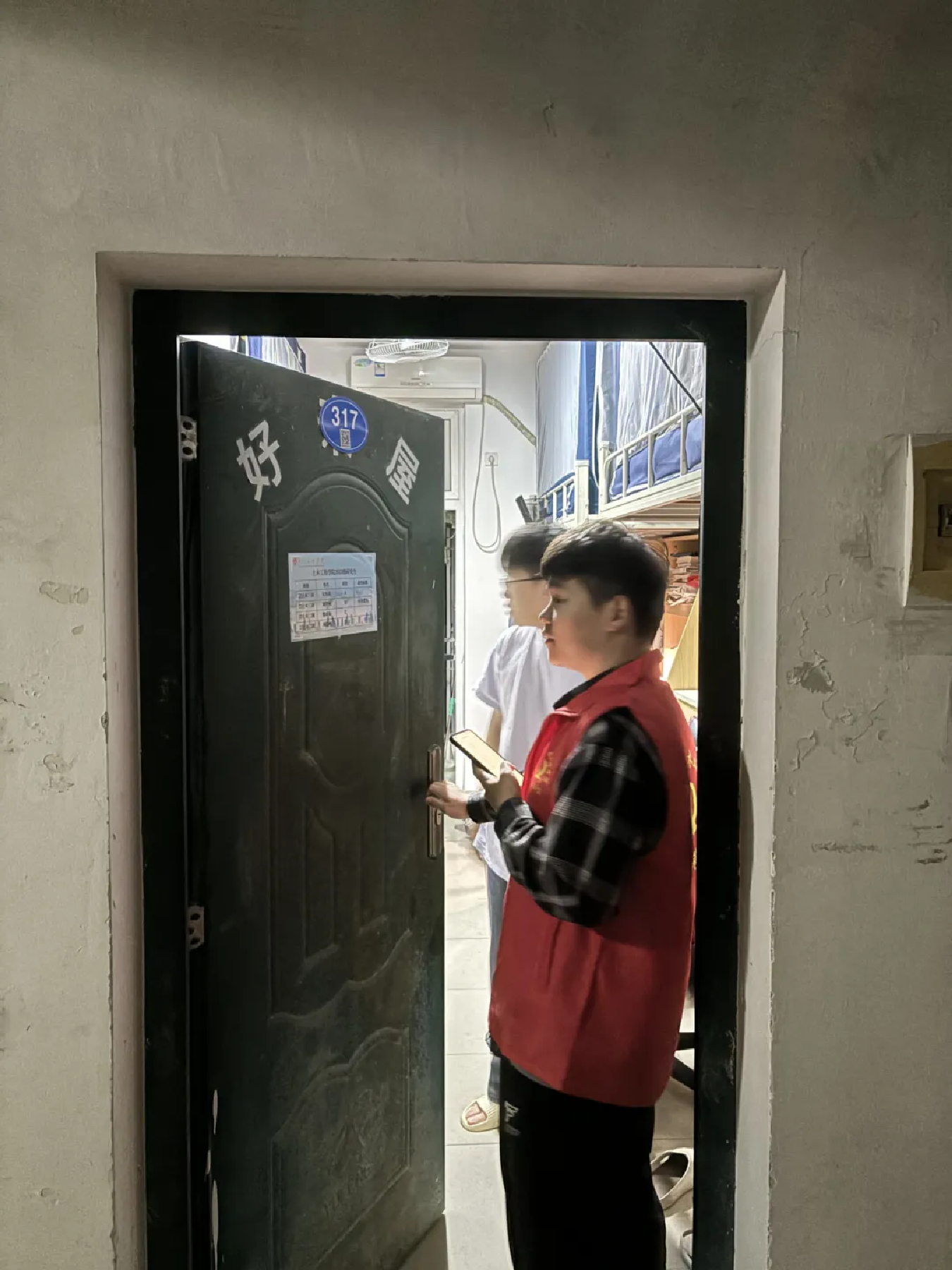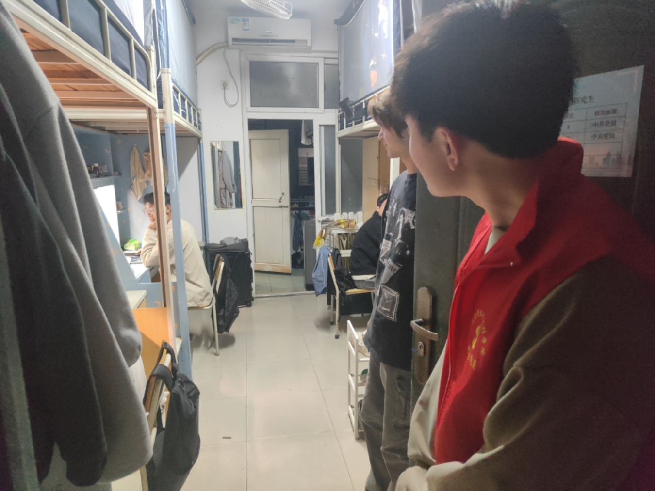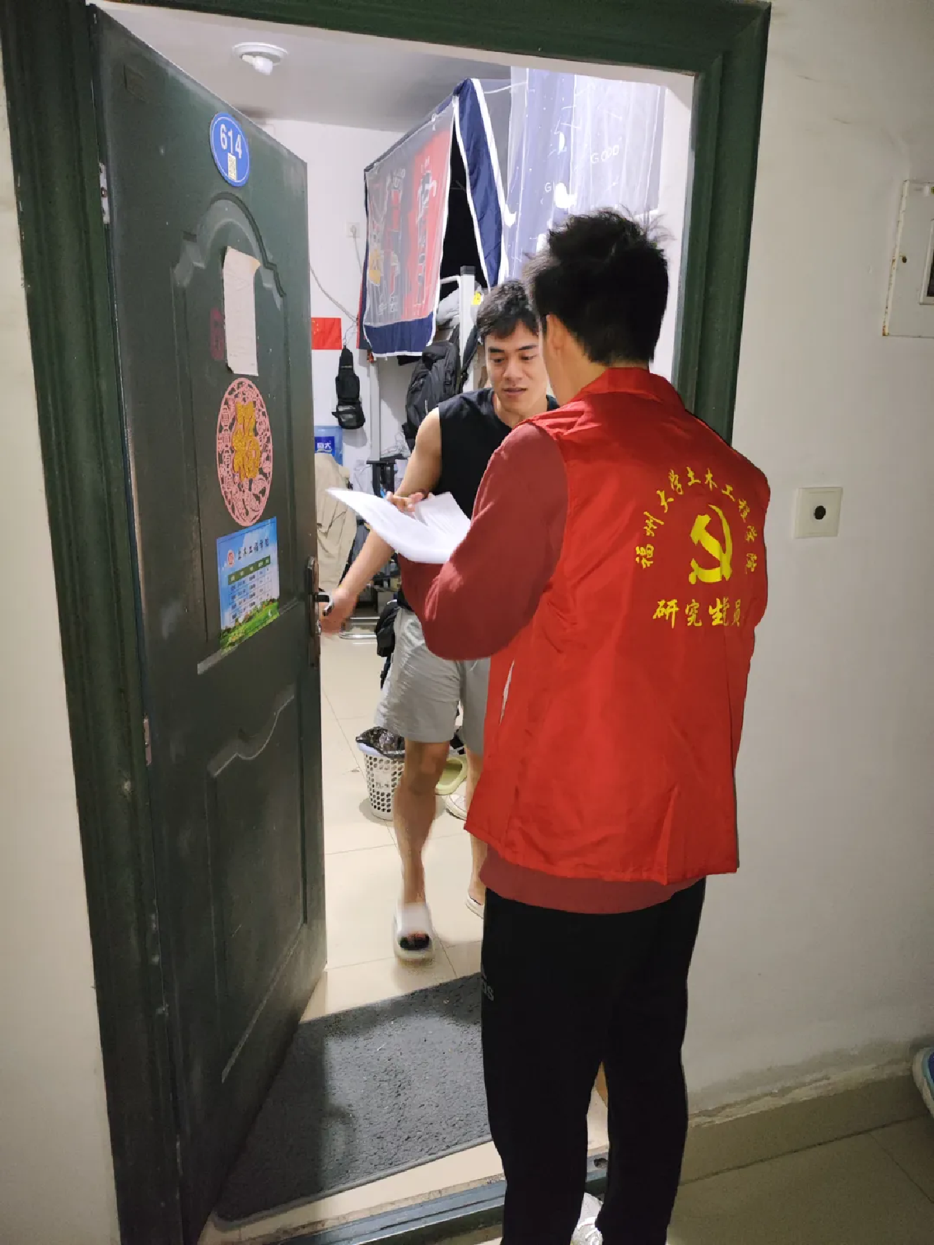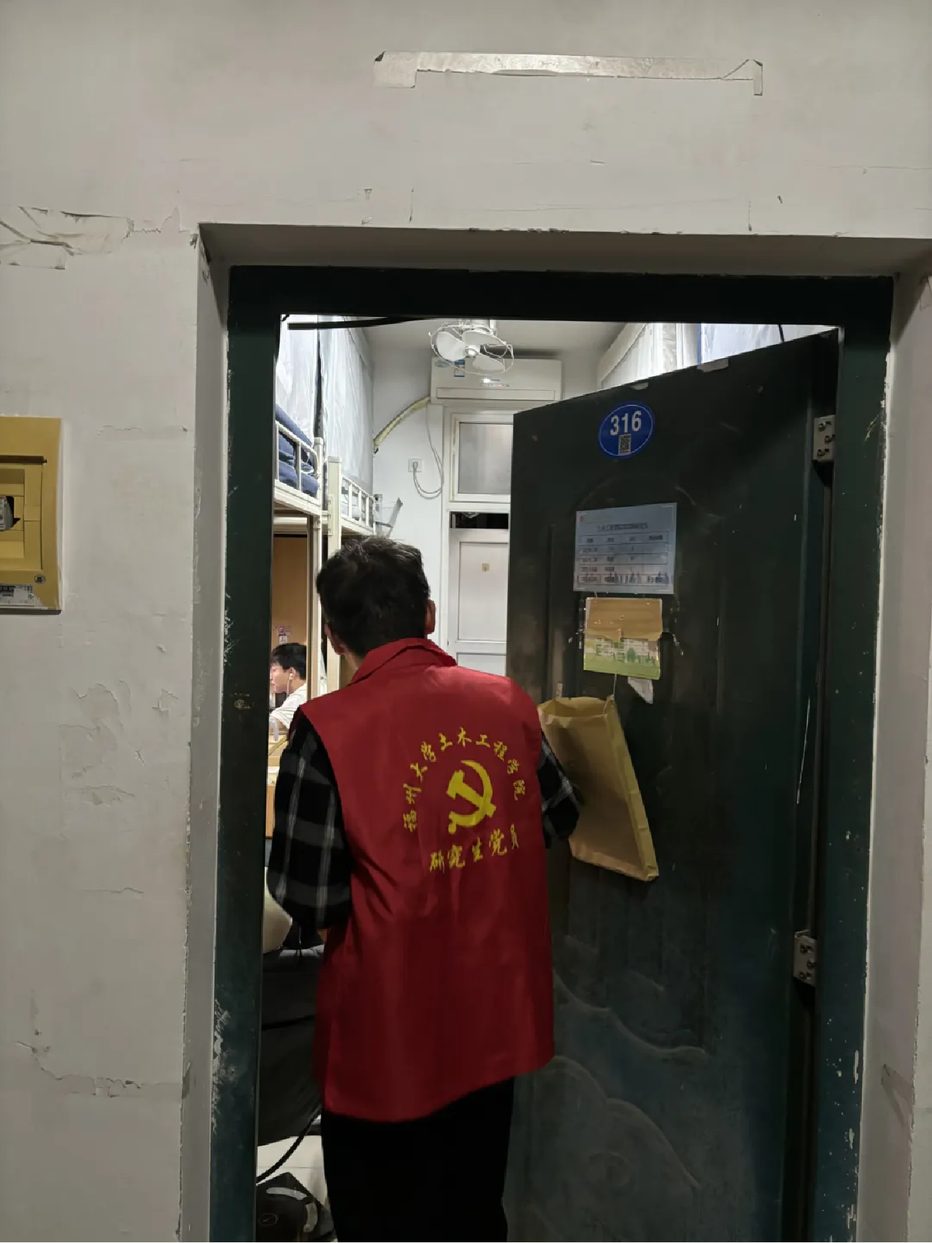 为严格落实学校工作部署和相关要求,充分发挥研究生党员在宿舍管理中的积极作用,提高研究生的自律意识、安全意识和责任感,维护宿舍的安全与秩序,全力做好研究生宿舍管理工作。2024年5月14日晚,肉便器 组织研究生党员对肉便器 研究生所在的8号楼、12号楼、14号楼、21号楼、53号楼、63号楼等进行晚点名抽查以及安全排查工作。