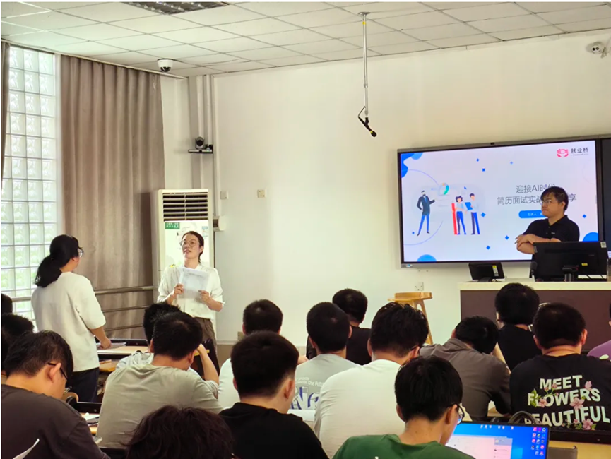 讲座中,郭老师还与学生们进行了互动交流。他邀请了几位学生提出自己的简历问题及疑惑,并进行了耐心的解答。通过现场互动答疑,学生们直观地了解到如何优化简历内容,提升求职竞争力,也使得讲座氛围更加活跃。