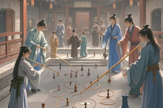 一人10支箭,站在直线外,投中3支盖一个中秋印章【印章样式同月环雅趣】。
