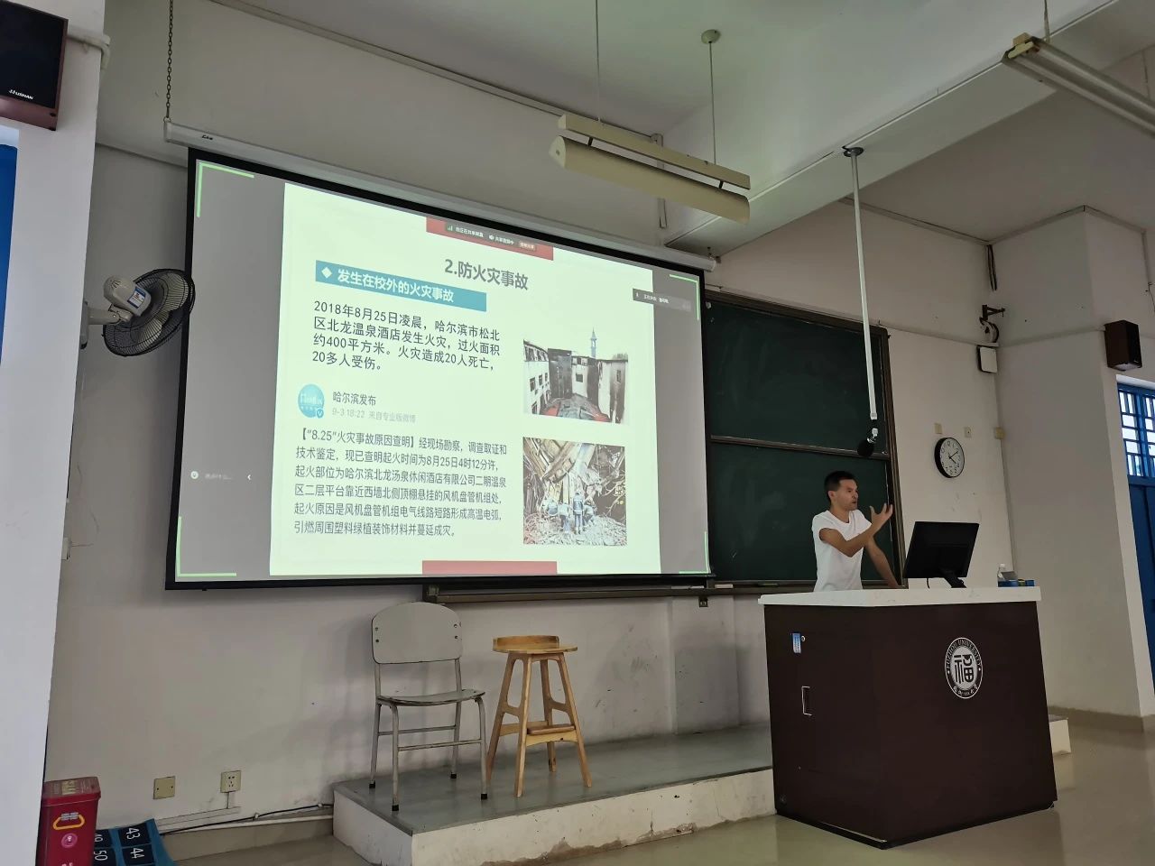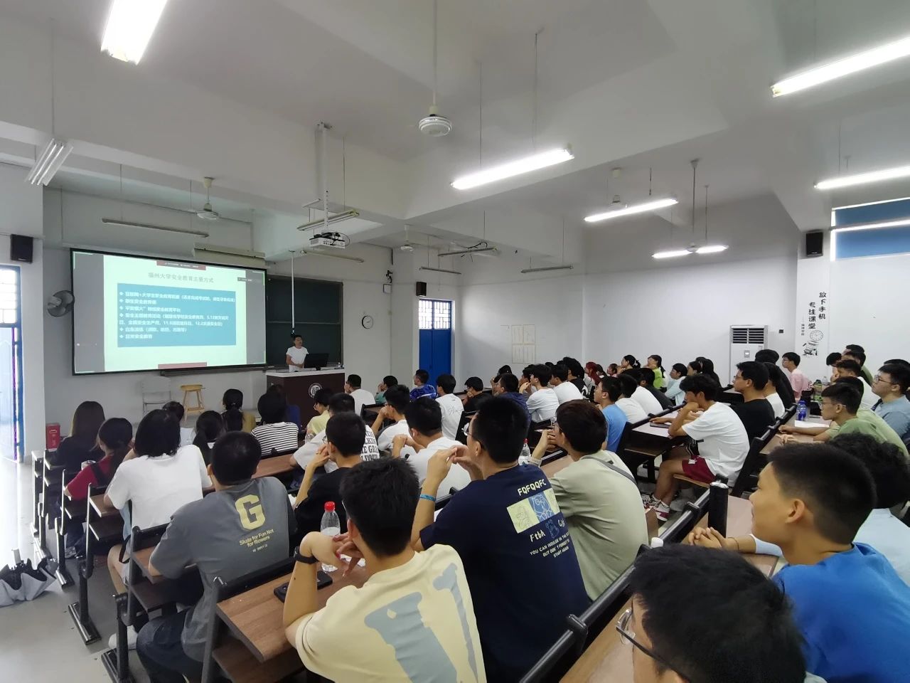 随后,程翔老师开展了安全教育讲座。他围绕消防安全,财产安全、交通安全和国家安全四个方面,通过一个个生动的视频案例,深入浅出地剖析了校园安全问题发生的根源、常见方式和正确的应对办法,强调新生在进入大学后提高财务安全意识、遵守法律法规、谨记安全准则和树立总体国家安全观的重要意义。讲座现场气氛热烈,每位新生都认真学习、积极互动,取得了良好的效果。