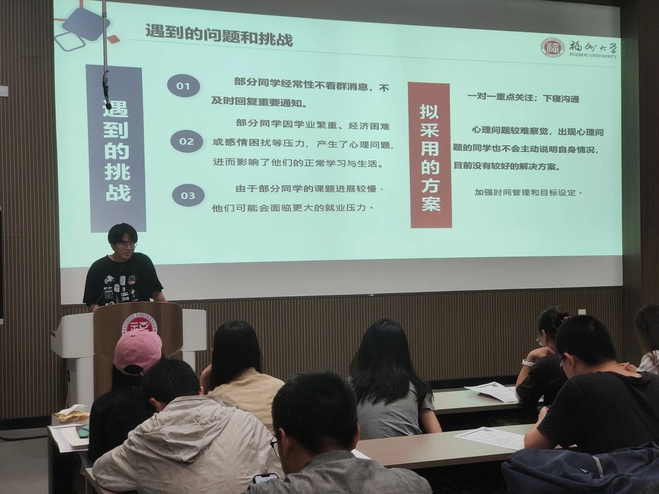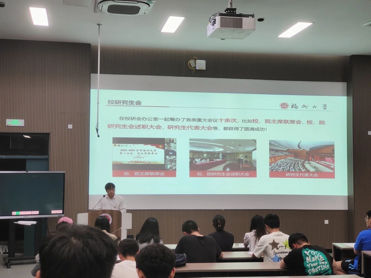 于东二-100教室开展了2023级研究生入党积极分子述职答辩会,研究生辅导员童莹芳、2023级研究生党支部书记和全体入党积极分子出席会议。