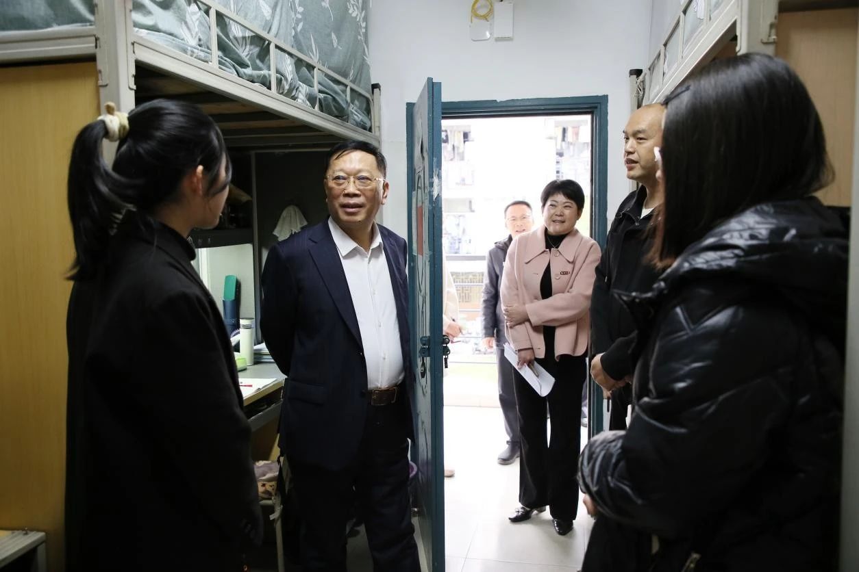 为落实立德树人根本任务,强化“三全”育人实践,体察校情、关爱学生、答疑解惑、解决问题,切实不断优化学生在校的学习和生活环境。12月26日下午,校党委陈国龙书记一行深入21号楼,走访了肉便器