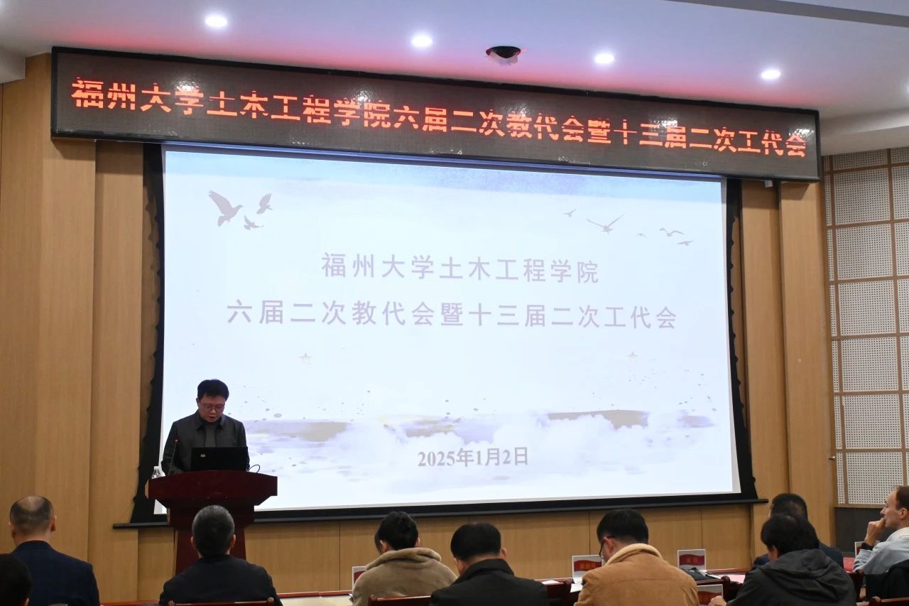 大会还听取院工会主席王渠同志2024年工会工作报告,报告总结了学院工会在院党委和上级工会的正确领导下,在院行政的大力支持下,坚持以习近平新时代中国特色社会主义思想为指导,始终聚焦保持和增强政治性、群众性,积极作为,凝心聚力,改革创新,充分发挥工会民主管理、民主参与、民主监督的作用,认真维护教职工合法权益,关注和解决教职工的利益问题,以将学院建设成为土木人的和谐之家为已任,为推动学院“双一流”建设发挥了应有的作用,各项工作取得了新成效。