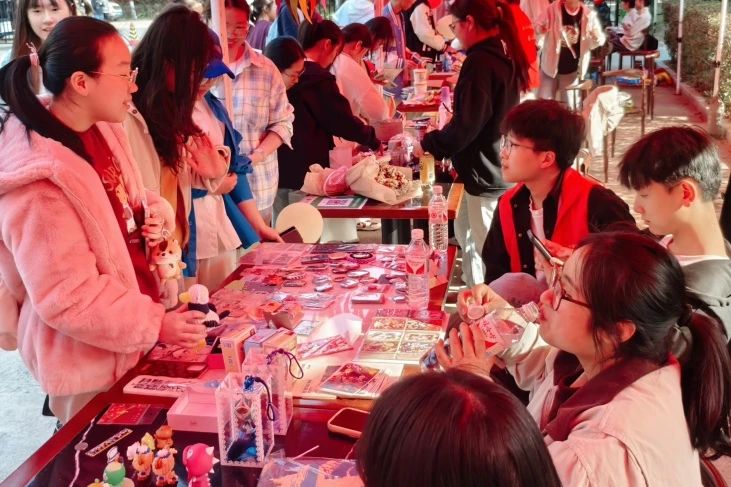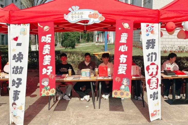 各班级义卖摊位井井有条、义卖物品琳琅满目。有工程管理班摆放的各式各样的玩偶娃娃,有水利水电班摆出的文学名著、科普读物、励志佳作和学霸笔记、每本都传递着思想升华着知识。在土木工程专业各班级摊位上,有惟妙惟肖的动漫谷子,有造型别致二次元徽章,有高度还原角色姿态神情的动漫手办,也有博人眼球的宿舍装饰品和图案精美、色彩鲜艳的动画贴纸,这些无不吸引着每一位路过的同学驻足购买。在智能建造和交通工程班级的摊位上,摆放着形形色色的文具、形态多样的手工艺品,以及同学们精心拼装的哆啦A梦,奥特曼拼图摆件。