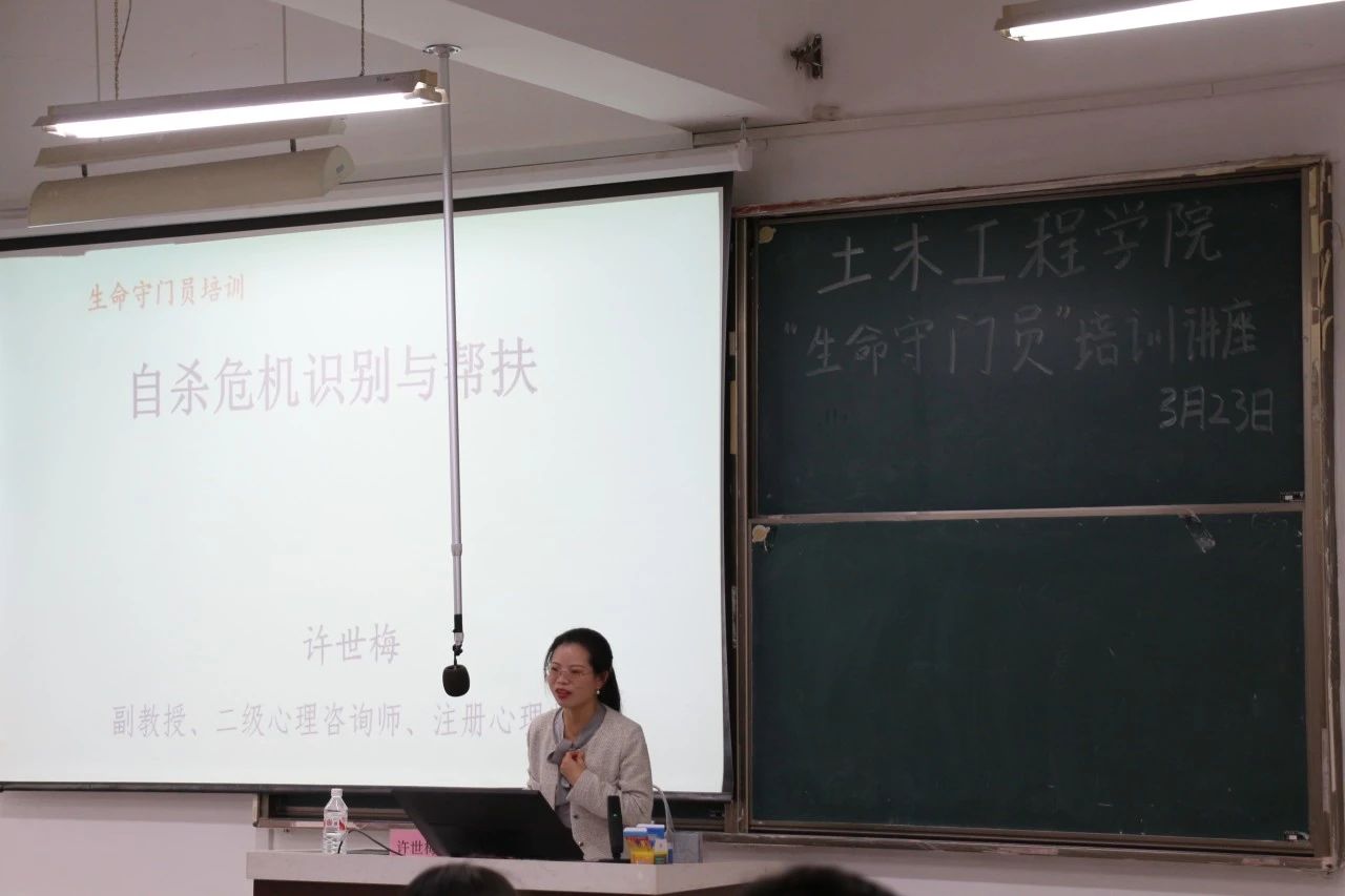 在铜盘校区A110教室举办了“生命守门员”培训讲座。校心理健康教育与辅导中心专职教师许世梅副教授主讲,学院大一全年级宿舍长及心理委员约140人参加。