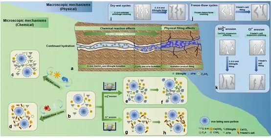 本研究结合宏观和微观实验研究了水泥和土凝岩改良铁尾矿砂的路用性能、耐久性能、微观机理和可持续性,基于试验和分析结果,发现土凝岩可以成为传统水泥改良剂的一种有前途和可持续的替代品。本研究为固废利用和新型建筑与道路材料提供了新的思路,有助于减轻常规道路材料的开采压力,为未来达到经济和生态的双重效益提供理论支持。